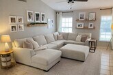 Spacious and beautifully updated, this 4-bedroom, 2-bath home offers the perfect blend of comfort, functionality, and modern upgrades. With 2,143 sq. ft. of living space plus an additional 250 sq. ft. fully enclosed, tiled Florida room, you'll enjoy nearly 2,400 sq. ft. designed for everyday living and year-round enjoyment. The thoughtfully designed layout features a large formal dining room and an oversized flex space ideal for a home office, gym, playroom, or additional lounge area. The open concept kitchen flows seamlessly into the main living space and includes granite countertops, generous prep space, and a large bar with seating for four. Both bathrooms and the kitchen have been upgraded with granite countertops, and updated lighting enhances the primary suite, living room, and bathrooms. Major improvements include a brand-new KitchenAid refrigerator, updated water heater, and a new roof (2024) providing peace of mind for years to come. Enjoy modern smart-home features such as a Nest thermostat and front and rear Ring cameras. The fully fenced backyard features a new white vinyl privacy fence and a concrete patio, offering the perfect space for pets, kids, and relaxing evenings outdoors. The oversized driveway and garage provide ample parking and storage, complete with epoxy-coated floors, an elevated storage rack, and a mounted 65" TV included. The garage also features a separate 5x8 utility closet housing the water heater and AC system, along with a convenient wash tub area. Located on a quiet street with great neighbors, this home is just minutes from schools, grocery stores, and only six minutes from the Florida Turnpike, making commuting easy. The community also offers a playground and fishing pond for added enjoyment. This home truly combines space, upgrades, and location making it an exceptional rental opportunity. Small Dog or Cat OK, Pet deposit may apply.