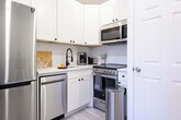 The advertised rate of $5,342/month is the lowest available price, based on a 1 month(s) stay with a move-in date of April 30, 2026. Rates vary depending on the duration of stay, season, and other parameters. For exact pricing and additional pricing components, please visit our website and enter your desired move-in and move-out dates. The rate is applicable when billed upfront; it can be higher if billed in multiple payments. This brand new studio apartment is located on the Upper East Side of Manhattan, in the heart of the neighborhood. The location is ideal for both business and leisure travelers, with many restaurants, bars, shops, and other amenities nearby. The apartment is conveniently located near subway stations, with the Q train only a 2-minute walk away and the 6 train about 5 minutes away. This studio is a brand new and fully renovated apartment that offers a comfortable and luxurious living experience. It features a spacious living room lounge, a cozy bedroom with a queen-size bed and memory foam mattress, a full bathroom, a fully equipped kitchen, and an in-unit washer and dryer. The apartment boasts high-quality renovations, new furniture, ample natural light through two big windows, and complimentary clean linens and towels. Guests will also enjoy the added convenience of complimentary high-speed wireless internet and 120 HD cable channels, making it an ideal choice for a memorable New York City vacation or a comfortable and convenient stay. Under 15-pound dogs are allowed with owner approval. One pet is allowed with a $350 pet fee. The neighborhood offers a variety of dining and shopping options, with many highly recommended restaurants, bars, and trendy shops nearby, as well as various amenities such as supermarkets, pharmacies, coffee shops, delis, fast food, nail salons, cleaners, and bank services. The area is considered a convenient place with plenty of options. Getting around East 75th Street can be done by walking, biking, or taking public transportation such as the subway or bus. The subway has several stations located near East 75th Street, including the 72nd Street subway station on the 1, 2, and 3 lines, the 77th Street subway station on the 6 line, and the 86th Street subway station on the 4, 5, and 6 lines. Additionally, several bus lines also run through the area, making it easy to get around. Taxis, Ubers, and other ride-hailing services are also available, making East 75th Street a well-connected location for transportation. Smoking and parties are not allowed. Guests are expected to keep quiet and be respectful to neighbors. Please follow trash recycle rules. New York City's heating season is until the end of May, and window air conditioning will be installed around mid-April. Guests can request an earlier installation. Personal check-in and welcome home tour are provided to every guest, and remote check-in is also possible as the building and apartment have an electronic smart lock key. [SI]