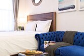 This brand new studio apartment is located on the Upper East Side of Manhattan, in the heart of the neighborhood. The location is ideal for both business and leisure travelers, with many restaurants, bars, shops, and other amenities nearby. The apartment is conveniently located near subway stations, with the Q train only a 2-minute walk away and the 6 train about 5 minutes away. This studio is a brand new and fully renovated apartment that offers a comfortable and luxurious living experience. It features a spacious living room lounge, a cozy bedroom with a queen-size bed and memory foam mattress, a full bathroom, a fully equipped kitchen, and an in-unit washer and dryer. The apartment boasts high-quality renovations, new furniture, ample natural light through two big windows, and complimentary clean linens and towels. Guests will also enjoy the added convenience of complimentary high-speed wireless internet and 120 HD cable channels. This apartment is an ideal choice for those seeking a memorable New York City vacation or a comfortable and convenient stay. Under 15-pound dogs are allowed with owner approval. One pet is allowed with a $350 pet fee. The neighborhood offers a variety of dining and shopping options, with many highly recommended restaurants, bars, and trendy shops nearby, as well as various amenities such as supermarkets, pharmacies, coffee shops, delis, fast food, nail salons, cleaners, and bank services. The area is considered a convenient place with plenty of options. Getting around East 75th Street can be done by several means of transportation, including walking, biking, or taking public transportation such as the subway or bus. The subway has several stations located near East 75th Street, including the 72nd Street subway station on the 1, 2, and 3 lines, the 77th Street subway station on the 6 line, and the 86th Street subway station on the 4, 5, and 6 lines. Additionally, several bus lines also run through the area, making it easy to get around. Taxis, Ubers, and other ride-hailing services are also available, making East 75th Street a well-connected location for transportation. New York City's heating season is until the end of May. Beginning around mid-April, window air conditioning will be installed in the apartment. Contact us if you would like to request an earlier installation. Smoking and parties are not allowed. Please keep quiet and respectful for your neighbors and follow trash recycle rules. [SI]