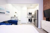 This brand new studio apartment is located on the Upper East Side of Manhattan, in the heart of the neighborhood. The location is ideal for both business and leisure travelers, with many restaurants, bars, shops, and other amenities nearby. The apartment is conveniently located near subway stations, with the Q train only a 2-minute walk away and the 6 train about 5 minutes away. This studio is a brand new and fully renovated apartment offering a comfortable and luxurious living experience. It features a spacious living room lounge, a cozy bedroom with a queen-size bed and memory foam mattress, a full bathroom, a fully equipped kitchen, and an in-unit washer and dryer. The apartment boasts high-quality renovations, new furniture, ample natural light through two big windows, and complimentary clean linens and towels. Guests will also enjoy the added convenience of complimentary high-speed wireless internet and 120 HD cable channels, making it an ideal choice for a memorable New York City vacation or a comfortable and convenient stay. Under 15 pound dogs are allowed with a limit of one pet. Located just three blocks from Central Park, which can be reached in about a seven-minute walk, this accommodation offers easy access to the Metropolitan Museum of Art and other museums in the area. A wide selection of highly recommended restaurants and bars are just steps away, along with trendy shops and many other convenient amenities. 2nd Avenue boasts a diverse range of restaurants, offering something for every taste. In addition to the numerous dining and shopping options, guests will find a range of useful services and facilities nearby, including a Duane supermarket/pharmacy, CVS, Starbucks, delis, fast food outlets, nail salons, and cleaners offering both wash and fold and dry cleaning services. Bank services from Chase and Bank of America are also just steps away, ensuring that guests have everything they need for a comfortable and convenient stay. New York City's heating season is until the end of May. Beginning around mid-April, window air conditioning will be installed in the apartment. If you would like to request an earlier installation, arrangements can be made. Smoking and parties are not allowed. Please keep quiet and respectful for your neighbors and follow trash recycle rules. Guests will enjoy complimentary high-speed wireless internet, making it easy to work remotely or stay connected during their stay. [SI]