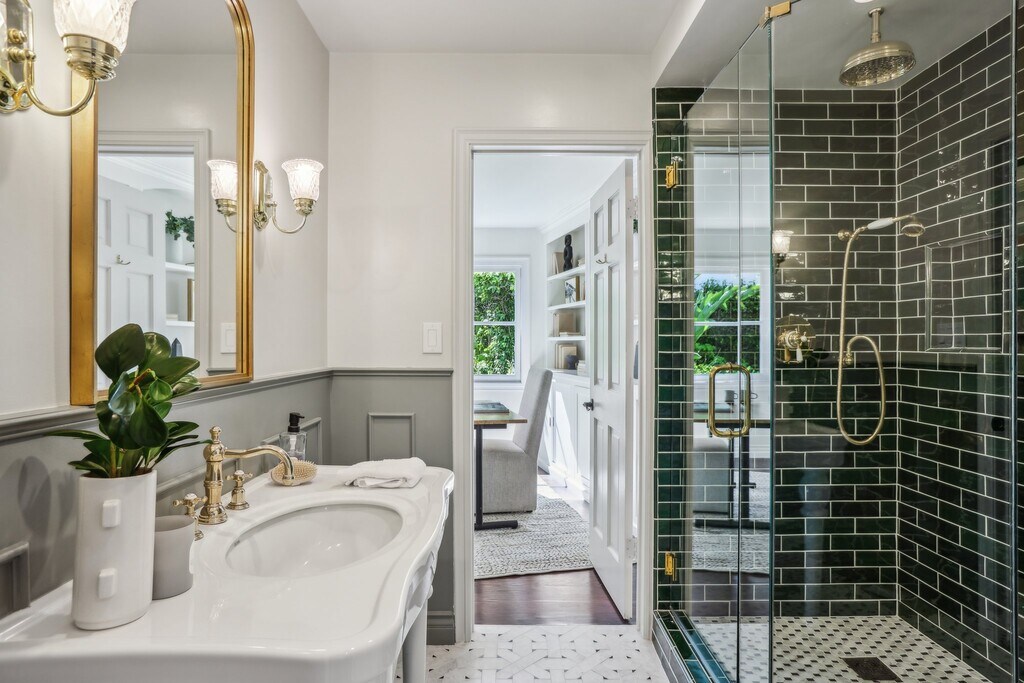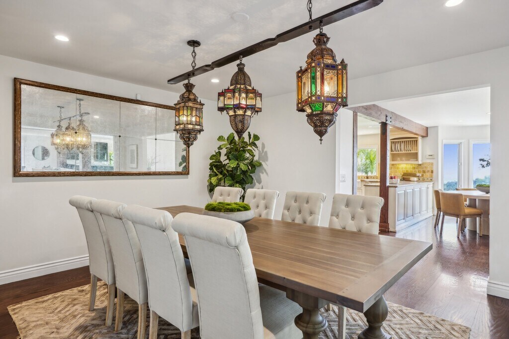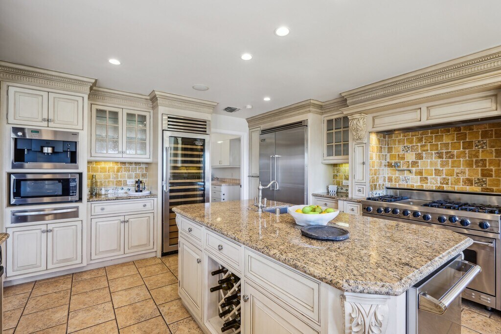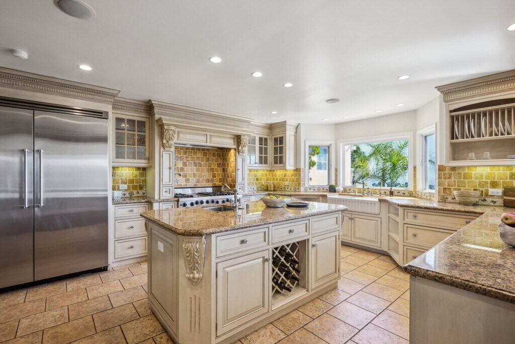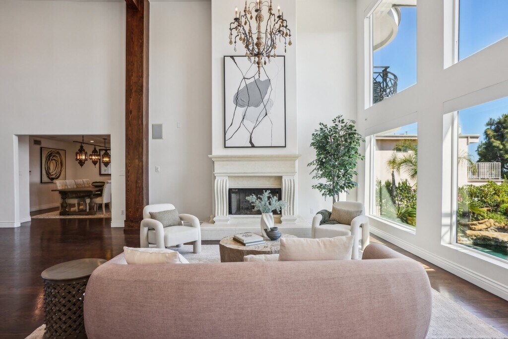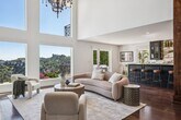 Perched at the Summit of Mount Olympus and tucked away at the end of a peaceful cul-de-sac, this extraordinary 5-bed/5-bath estate, including an office and a detached guesthouse offers an unparalleled blend of luxury, privacy, and breathtaking views. A true entertainer's dream, this Contemporary Mediterranean masterpiece is thoughtfully designed to capture the essence of California living. Step into the expansive Great Room, where 20-foot soaring ceilings, rich hardwood floors, an elegant fireplace, and grand Palladian windows frame sweeping views of the city, canyon, and ocean beyond. Whether hosting formal gatherings or relaxing with loved ones, the space seamlessly combines comfort and sophistication. The Gourmet Chef's Kitchen is equally impressive featuring custom wood cabinetry, granite countertops, a generous center island, and a full suite of top-tier Viking appliances, including a full-height wine refrigerator. A built-in Miele espresso machine ensures your mornings are as refined as your evenings. The formal dining room and adjacent breakfast area offer elegant spaces for every occasion. This home boasts two expansive master suites, each offering a private sitting area, spa-inspired en suite bath, and serene balconies. Outside, a true oasis awaits. The meticulously landscaped backyard is a private retreat, reminiscent of the world's most luxurious resorts. Lush gardens envelop a resort-style pool with spa and cascading waterfalls, creating a serene ambiance perfect for relaxation or entertaining. With its seamless indoor-outdoor flow, smart technology, guest accommodations, and dramatic panoramic vistas, this rare offering defines high-style living. Sophisticated yet welcoming, this home is the ultimate Southern California sanctuary. Offered as the quintessential retreat for those seeking privacy, elegance, and inspiration at every turn.