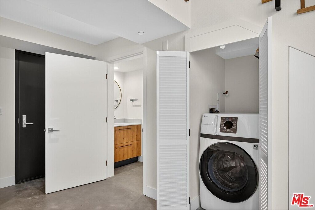 Here in what's known as Frogtown, a slice of Los Angeles alongside the river, is a new building. These are live/work lofts, designed for a life built to be both efficient and inspired. The space is defined by clean lines and unblemished surfaces, with floor-to-ceiling windows that not only bring the world in but also frame it beautifully. Inside, you'll find a modern kitchen and two and a half bathrooms. The layout includes a bedroom loft and a main bedroom that opens directly onto a private patio. For convenience, a washer/dryer and dishwasher are tucked away in the kitchen area. The building provides peace of mind with gated parking and electronic entry. The private patio offers a quiet escape. From there, you can observe the true character of the city, the warehouses and power lines, as well as the river that gives the neighborhood its identity. Located in the heart of Frogtown, you're just moments away from the best of the Eastside. MLS# 25609961