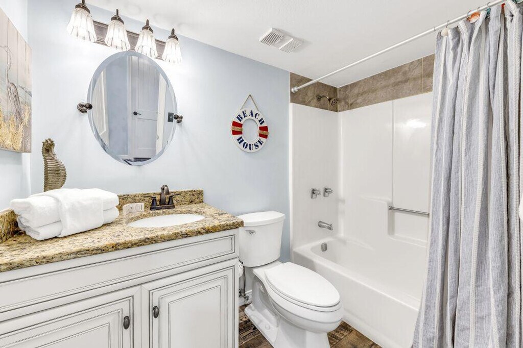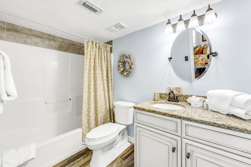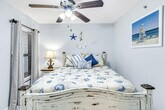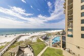 Stunning beachfront views await you in this 2-bedroom, 2-bathroom condo. When you're not outside enjoying the sugar-white sand and surf, take in the gorgeous beach and pool views from the private balcony, or relax in the evenings by the custom-built electric fireplace in swivel rocking recliners. Just 10 quick steps up to the first floor with easy direct access from parking, though note that this unit does not have elevator access. Enjoy entertainment with a smart TV offering free cable and stay connected with free Wi-Fi. The condo also includes a washer and dryer, and the refrigerator comes with an ice machine. Whether you're here for a relaxing getaway or an extended stay, this condo offers comfort, convenience, and breathtaking views—welcome to your perfect beachfront retreat! The unit features a queen sleeper hide-a-bed with an upgraded mattress for a comfortable night's rest and extra dining for three at the custom live edge bar. Beachside chair and umbrella service is available for an additional fee. Parking passes cost $55 per vehicle with a maximum of 2 passes per reservation, which can be purchased on-site at the Front Desk after completing online registration. Explore local attractions such as Adventure Island, Orange Beach Waterfront Park, and The Wharf Amphitheater. The nearest airport is Pensacola Regional Airport. Enjoy dining at nearby restaurants like Live Bait Restaurant, Bubba’s Seafood House, and Doc’s Seafood & Steaks. For beach fun, try jet ski rentals, dolphin and sunset cruises, Segway tours, parasailing, and fishing charters. Don't miss the Blue Angels Pensacola Air Show and the Gulf Coast Zoo. There is no elevator in the building, so guests must climb stairs. For March 1st to May 1st, the minimum age requirement for check-in is 25 years old. No smoking is allowed in the unit or on the balcony, with any violation incurring a $400 fine plus cleaning costs. Quiet hours are enforced with Noise ware technology, and violations of the no parties or events policy will result in a $500 fine. A State Identification Card or Driver License copy will be requested upon booking, and the traveler must be at least 22 years of age to make a reservation. [SI]