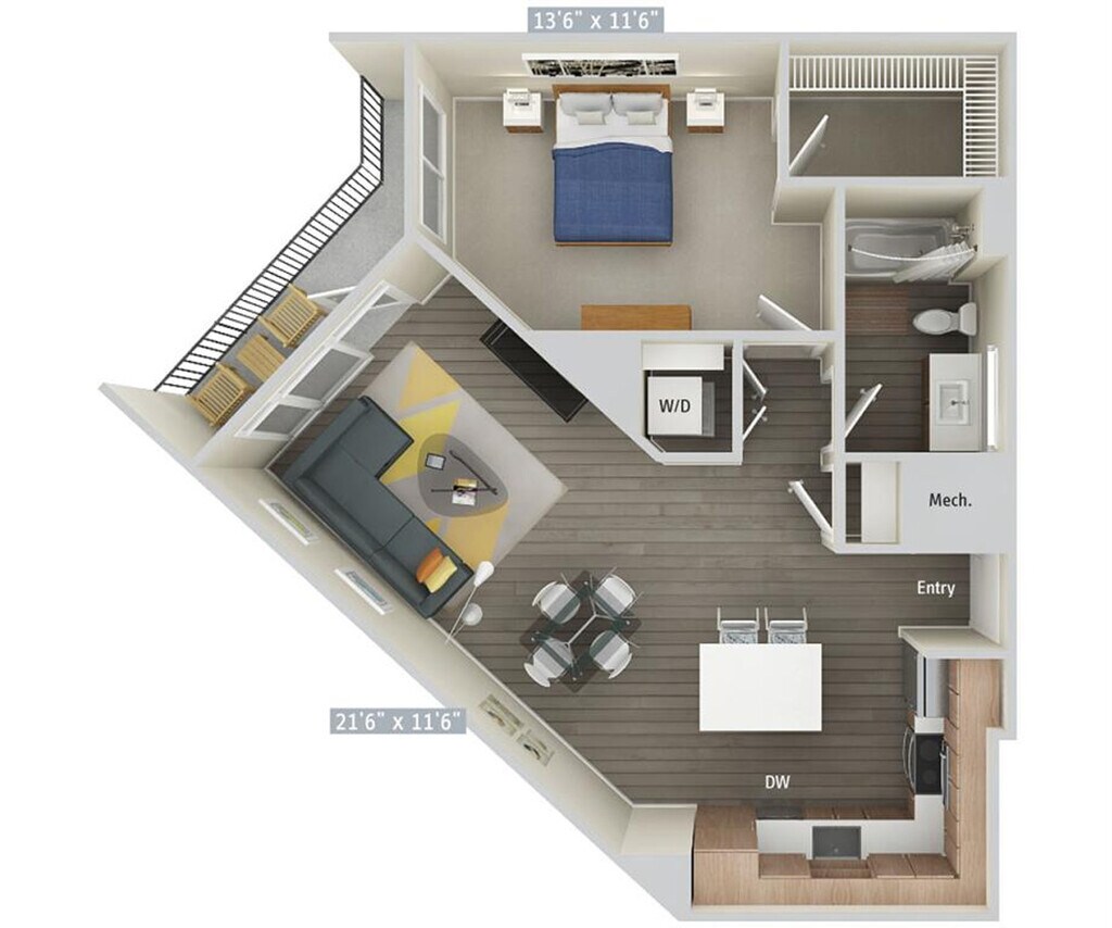 1 Dormitorio, 1 Baño, 682 pies²Disponible May 4Galería del Modelo