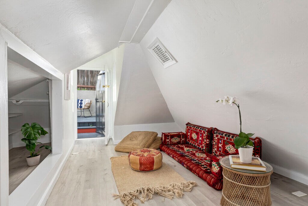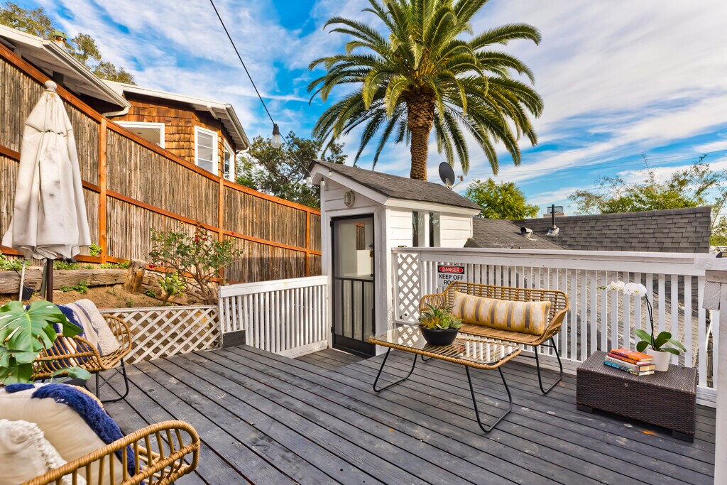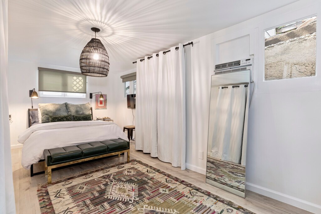 This listing is for a 6 month lease, furnished single family one bedroom house with loft, bedroom, private garage, and two private outdoor decks. Welcome to 2427 Gower Street, your storybook hideaway in the heart of Beachwood Canyon. Tucked away among lush trees and winding hillside roads, this enchanting 1920s cottage embodies the timeless magic of the Hollywood Hills. From the moment you arrive, you're greeted by sweeping views of the downtown skyline and the serenity of nature all around you, a rare combination of charm, privacy, and cinematic beauty. The wraparound front porch and upper sun deck both capture breathtaking city views, offering the perfect setting for morning coffee, sunset dinners, or evenings under the stars. Step inside to a bright and airy living and dining area where natural light pours through every window, creating a warm and inviting space ideal for both quiet relaxation and lively entertaining. Original character meets thoughtful updates throughout, featuring a high ceiling living room anchored by a fireplace and complemented by a new HVAC system that seamlessly blends historic charm with modern comfort. Just moments from Beachwood Village, residents can enjoy local favorites such as the Beachwood Cafe, the village market, and scenic canyon trails, all while being only minutes from Hollywood's best dining, shopping, and nightlife. An additional 19'x9' bonus room, not reflected on tax records, provides extra versatility and is perfect for a creative studio, home office, or private retreat. Whether you are seeking a full-time residence or a weekend escape, this home offers a rare opportunity to experience the best of both worlds: tranquil hillside living with effortless access to the heartbeat of Los Angeles. A wonderful condo alternative for those seeking charm, privacy, and character in the Hollywood Hills. Discover the enduring allure of Beachwood Canyon and make this hidden gem your own sanctuary above the city.