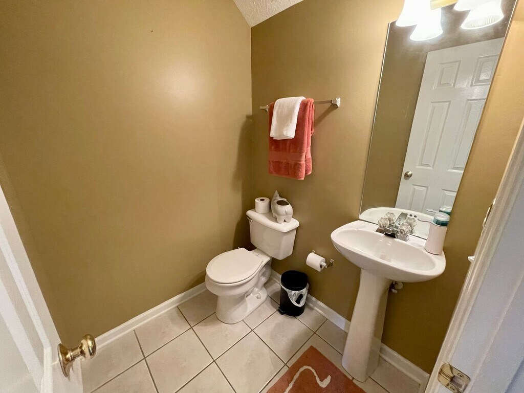 This 3 bedroom, 2.5 bath end unit condo has no carpet, but LVP and tile throughout. Walk in to the 2 story foyer with stairs leading to bedrooms 2 and 3. Dining room is spacious and leads to kitchen. Kitchen has plenty of counter space, all appliances, and pantry. Kitchen overlooks the light-filled den area. French doors lead from den to private backyard patio. Main bedroom is on the first level with spacious closet and ensuite bath. Laundry room and half bath are off the hallway leading to the single car garage. Upstairs there are 2 large bedrooms with ample closet space and a jack-and-jill bath. Each bedroom has its own bathroom sink. Unit includes use of the neighborhood pool and garbage.