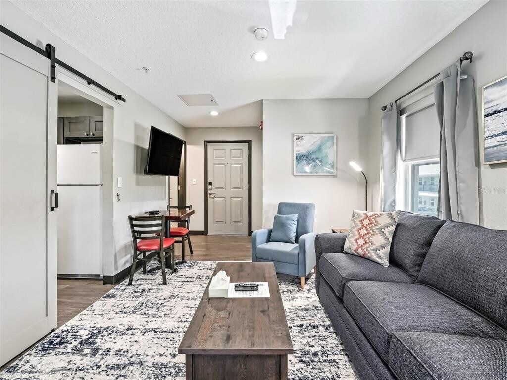 Luxury suite with 2 queen beds in the bedroom and a queen pull out sofa bed in the living room. Weekly cleanings,continental breakfast,2 bathrooms,55' smart tv's in bedroom and living room,full size furnished kitchen. toiletries,on site laundry facilities,5 minutes to downtown,7 minutes to hospitals,walk to restaurants and shopping,10 minutes to Silver Springs. MLS# OM689478