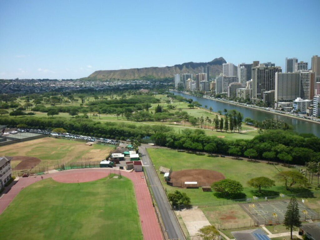 This one-bedroom unit at Kaimana Lanais features a spacious living area that opens to stunning views of Diamond Head, the Ala Wai Canal, the golf course, and Waikiki. The best part of this unit is the huge lanai that looks over the Ala Wai Canal and Waikiki as well as the lanai off the bedroom that looks towards Diamond Head! The fully equipped kitchen includes a refrigerator, range, dishwasher, and microwave hood, and a stackable washer and dryer add extra convenience. The secure building offers one covered, assigned parking stall on the first level just off the lobby. Amenities include a swimming pool, sauna, recreation area with BBQ, and an on-site resident manager. Ideally located near Iolani School, Ala Wai Elementary, Ala Wai Community Park, Ala Moana Shopping Center, Magic Island beach park, and Waikiki. The unit provides easy access to island living and is just minutes from the UH Manoa campus. This is a non-smoking unit with no pets allowed, and renter’s insurance is required prior to move-in. Currently the building is being worked on with spalling repairs and then eventually painting of the building. Call Lurline for a showing: or email to .
