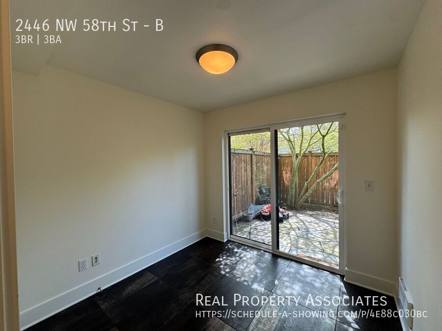 Bright & Spacious Ballard Townhome in Prime Ballard Location Welcome to this stylish and well-designed 3-bedroom, 2.5-bath townhouse located in the heart of Ballard, just one block from QFC and steps from the convenient #40 bus line. The open-concept main floor features hardwood floors, a cozy living area with a fireplace, and a private balcony that flows seamlessly into a modern kitchen equipped with stainless steel appliances and generous cabinet space. Upstairs, you’ll find two spacious bedrooms, each offering its own en suite bathroom for added comfort and privacy. The lower level includes a third bedroom, perfect for a home office or guest room, along with access to a private patio and an attached one-car garage. Enjoy easy access to Golden Gardens Beach, the Ballard Ship Canal, Discovery Park, and the vibrant shops, cafés, and restaurants along historic Ballard Avenue. This home offers the perfect blend of convenience, comfort, and neighborhood charm. 6/1/2026- rent $3,800 12-month lease Tenants pay for all utilities Washer/dryer in unit Attached garage Pet allowed on a case-by-case basis with an additional deposit Monthly pet rent: $35 Security performance deposit: $3,750 Application fee: $45 per adult Renter's legal liability insurance is required and part of the Benefits Package ($30 monthly). If qualifying legal liability insurance is purchased and provided by the tenant to RPA, the Benefits Package can be reduced to $15 monthly for reduced benefits. Professionally managed by: Real Property Associates, Inc Townhouse Washer/Dryer Professionally Managed by Real Property Associates
