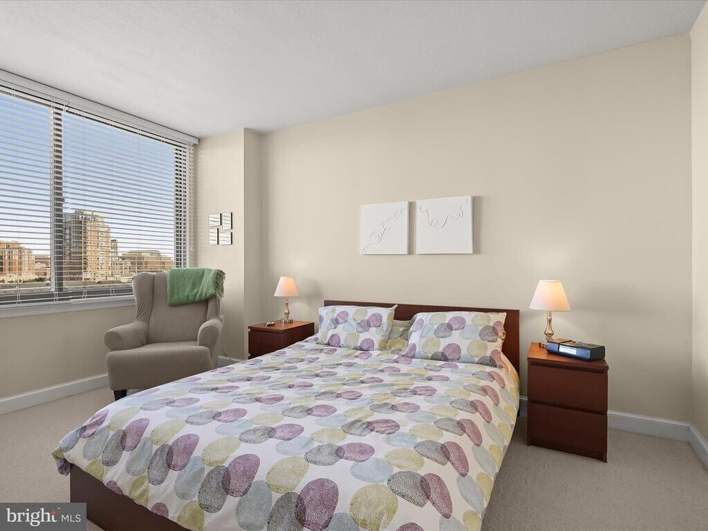 Bright, cozy and spacious, this one bedroom with a den which can be used as a second bedroom/one bathroom condo unit is just steps away from the Huntington Metro Station (end of yellow line) and a few miles from Old Town Alexandria, Mount Vernon, Reagan National Airport, National Harbor, Hoffman Center, NSF and PTO. This beautiful 14th floor unit has exposure on the east side with beautiful views of the Potomac River where noise from the street and metro is inaudible. This unit also boasts of beautiful granite countertops and backsplash, stainless steel kitchen appliances (recently replaced dishwasher, refrigerator, gas range), washer/dryer, four closets with walk-in including built-in shelves/drawers, extra storage space, jetted tub in master bathroom and a huge balcony (biggest on building, 8ft x 16ft) that’s great for entertaining or just relaxing and enjoying a glass of wine looking at the river! Freshly painted with luxurious carpet that is also professionally maintained and cleaned. One parking spot in covered garage is included with the rent. The building features all-around fob access, 24/7 concierge service, along with on-site management, free wifi in common areas and free guest parking. The residents have at their disposal year-round access to a fitness center nicely equipped with weights, cardio machine equipment, and exercise room. Seasonal access to an outside rooftop swimming pool, hot tub and sundeck with lounging area and gas grills (available year round) is provided at no extra cost. The building offers two large entertainment lounges with pool table available for prior reservation for private events, as well as a guest suite for family/friends. The community feels very friendly and safe. Luxury, affordability, convenience, comfort and a sense of community - all the things that define your perfect home, can be found at Midtown Alexandria; come and live the dream! Renter pays gas, electric, cable/internet. Water and trash disposal included. No smoking. No pets. Minimum lease is 12 months (longer-term renters preferred). Credit check required (included in application) to initiate a lease. One month rent and security deposit must be paid in advance. The move-in fee will be paid by the owner.