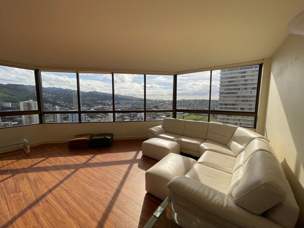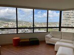 Enjoy views from mountain to ocean in this beautifully renovated unit on the 30th floor of the secured Iolani Court Plaza. This 3 bedroom, 2 bath partially furnished unit features vinyl plank & marble tile flooring, roll-down shade window coverings, sold surface counter tops, dishwasher, washer & dryer, & custom wood cabinetry. Electric/Water/Cable/Internet All INCLUDED!! Two side by side parking stalls (one extra-large). Amenities include pool, hot tub, pickleball and tennis courts, sauna, BBQ area, putting green. The building features fire sprinklers, Res. Mgr., security, plenty of guest parking, car wash area w/vacuum and mini-market. Conveniently located close to Iolani School, parks and restaurants. Please send ALL questions & showing requests. Sorry, no pets.