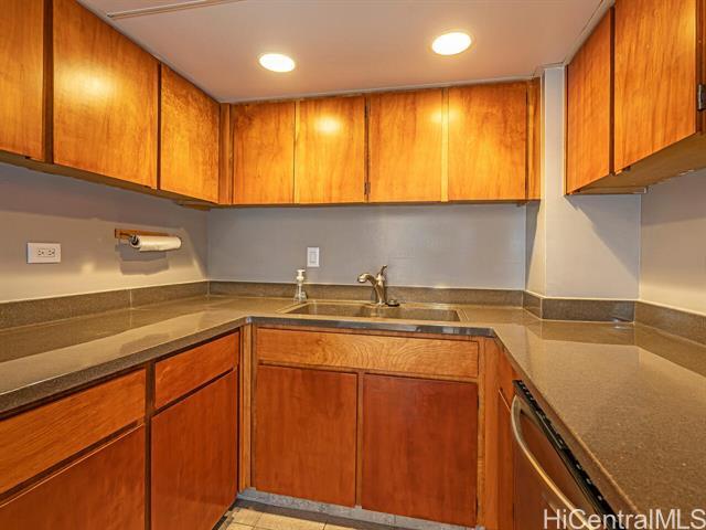 Newly renovated studio unit with 1 bathroom and 1 assigned parking space at Iolani Court Plaza. This charming unit boasts modern vinyl flooring, sleek new cabinets, quartz countertops, and an updated bathroom. Conveniently located near Iolani School, UH Manoa, Waikiki, Market City Shopping Center, and major bus lines. Enjoy access to excellent amenities, including BBQ grills, a swimming pool, jacuzzi, party room, tennis courts, and a putting green. All utilities included. The unit is available from 10/15/25. No pets and no smoking allowed. Don't miss this opportunity!