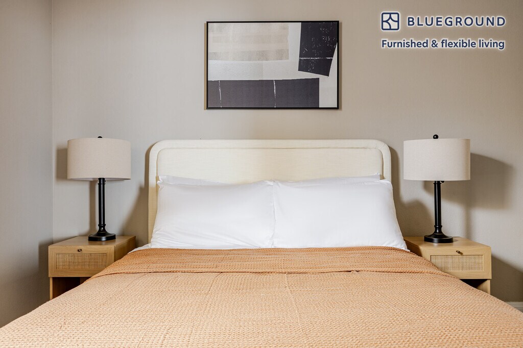Feel at home wherever you choose to live with Blueground. You’ll love this charming Playhouse Village furnished one bedroom apartment with its modern decor, fully equipped kitchen, and beautiful living room. Ideally located, you’re close to all the best that Pasadena has to offer! (ID #LAX1315) The advertised rate of $3,740/month is the lowest available price, based on a 12 month(s) stay with a move-in date of March 27, 2026. Rates vary depending on the duration of stay, season, and other parameters. For exact pricing and additional pricing components, please visit our website and enter your desired move-in and move-out dates. The rate is applicable when billed upfront; it can be higher if billed in multiple payments. Brokers are welcome to reach out. Were you looking for an unfurnished lease? Try Blueground instead and upgrade from unfurnished to furnished living: - Furnished at rates comparable to unfurnished - No setup or furniture costs - save thousands - Move-in ready - save time, just bring your suitcase Designed with you in mind As with any Blueground apartment, you’ll find a thoughtfully designed space complete with beautiful furniture and a fully equipped kitchen in this one bedroom property. And, thanks to our superior quality mattresses, luxury linens, and towels, you can relax knowing you’ll always feel comfortably at home. When you’re ready for some fun, you can take in the Pasadena vibes or bring the entertainment to you with the premium wireless speaker or smart TV. This apartment also offers in-apartment laundry. Sleeping arrangements Queen Bed, 63in/160cm Amenities Building amenities unique to this one bedroom apartment include an on-site: - BBQ Area - Dryer - Elevator - Swimming pool - Washing machine - Lounge - Parking - Pets allowed Arrival and ongoing support The entire apartment is yours to enjoy! Throughout your stay, you’ll have access to our Client Experience team through the Blueground App. You can schedule additional cleanings, submit maintenance requests, and view our neighborhood recommendations with just a few taps. We’ll share all details upon confirmation of your stay. Other things to note Building amenities may have an extra cost. This Blueground apartment has flexible lease options, allowing you to book it for one month, a year, or more. Pets are welcome, though weight limits and breed restrictions apply and may incur fees. Parking is offered based on availability and is subject to a fee. We take great pride in ensuring every photo displayed is shot in our own units with our actual furnishings. That said, we regularly refresh our decor and furniture arrangement, which may differ from what’s pictured. [SI]