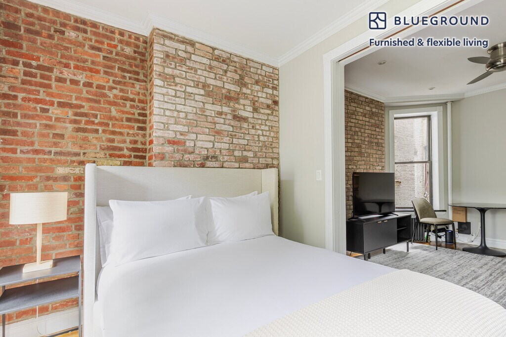 Discover the best of New York, with this one bedroom apartment in Nolita. It’ll be easy to simply show up and start living in this furnished apartment with its fully equipped kitchen, living room, and our dedicated, on-the-ground support. (ID #NYC1947) The advertised rate of $5,970/month is the lowest available price, based on a 12 month(s) stay with a move-in date of March 1, 2026. Rates vary depending on the duration of stay, season, and other parameters. For exact pricing and additional pricing components, please visit our website and enter your desired move-in and move-out dates. The rate is applicable when billed upfront; it can be higher if billed in multiple payments. Brokers are welcome to reach out. Were you looking for an unfurnished lease? Try Blueground instead and upgrade from unfurnished to furnished living: - Furnished at rates comparable to unfurnished - No setup or furniture costs - save thousands - Move-in ready - save time, just bring your suitcase Designed with you in mind Thoughtfully designed with bespoke finishes, modern furnishings, and a fully equipped kitchen, you’ll enjoy that “I’m home” feeling with this Blueground apartment. Whether you’re lounging in your pretty living room streaming the latest and greatest entertainment on the smart TV or premium wireless speaker, or getting some well-earned rest on the superior quality mattress with luxury linens, you’ll fall in love with everything this Nolita apartment has to offer. This apartment also offers in-apartment laundry. Sleeping arrangements Queen Bed, 63in/160cm Amenities Building amenities unique to this one bedroom apartment include an on-site: - Dryer - Washing machine Arrival and ongoing support The entire apartment is yours to enjoy! Throughout your stay, you’ll have access to our Client Experience team through the Blueground App. You can schedule additional cleanings, submit maintenance requests, and view our neighborhood recommendations with just a few taps. We’ll share all details upon confirmation of your stay. Ideally Located This furnished apartment is located in Nolita, a trendy neighborhood in Lower Manhattan. The name is shorthand for "North of Little Italy" among New Yorkers, who love this area for its dynamic character and fantastic shopping scene. Martin Scorsese grew up in Nolita, and it has also been home base for celebrities as diverse as Iman, Moby, and Gabriel Byrne. There is a diverse dining scene in the neighborhood, as well as plenty of bars and clubs. Nolita is served by several subway lines and bus routes, making it easy to get anywhere in the city from your new home. Other things to note This Blueground apartment has flexible lease options, allowing you to book it for one month, a year, or more. Please keep in mind that this is a walk up building. Brokes CYOF. We take great pride in ensuring every photo displayed is shot in our own units with our actual furnishings. That said, we regularly refresh our decor and furniture arrangement, which may differ from what’s pictured. [SI]
