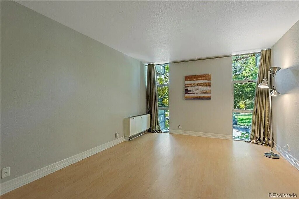Enjoy parkside living in this modernly renovated condo. This spacious 1-bed sits on the second floor of a secured building, and offers a patio that overlooks S.R DeBoer Park. The neighborhood is highly walkable and offers quick access to food, coffee, retail, and the University of Denver Campus, while maintaining a quiet residential feel. Off-street parking means you'll always have a guaranteed place to park. The condo features an open kitchen with breakfast bar, stainless steel appliances, mid-century modern floor-to-ceiling windows, multiple large closets with floor-to-ceiling mirrors, and easy-to-maintain hardwood flooring. You'll find plenty of room for belongings with an additional in-building storage unit and bike room. The in-building laundry is app-controlled for user-friendly laundry without the hassle of coins. The building accepts pets, and the beautiful DeBoer Park and DU campus offer ample space to walk dogs.