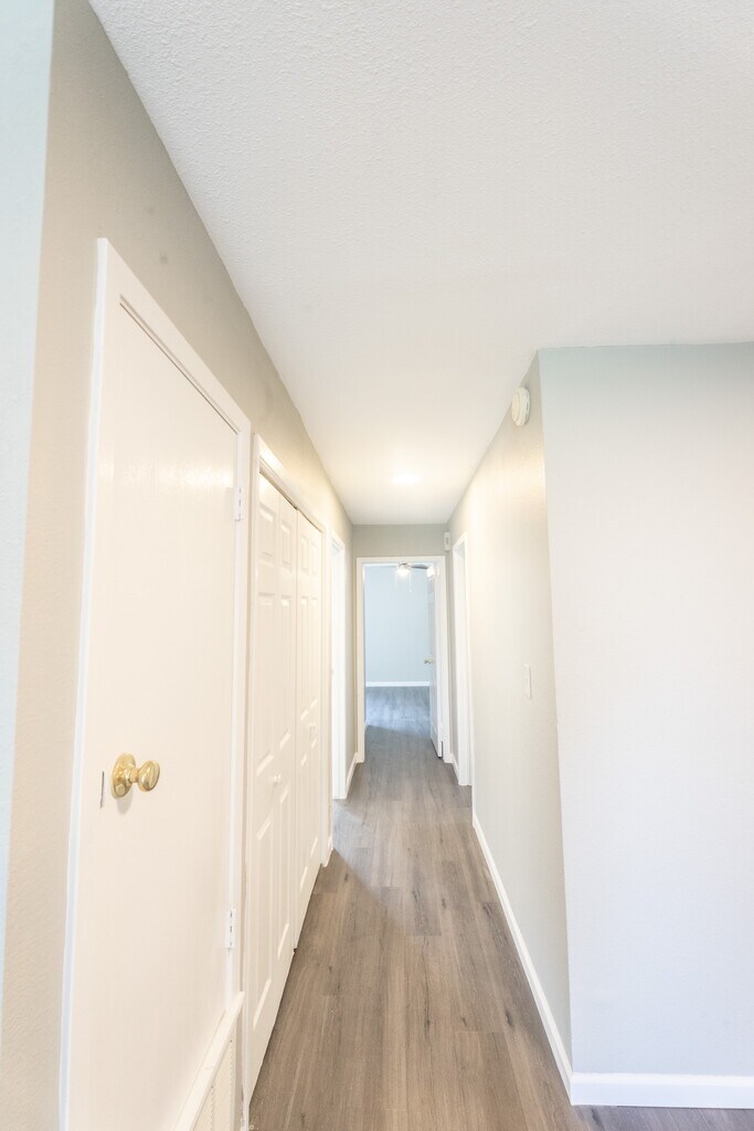 Kimberly WaltFresh, bright and great space. Just painted with a lovely shade of gray, new vinyl wood plank flooring in Living, Dining, Kitchen and Bath and new carpet in Bedrooms. There are 2 balconies, the larger one faces South with a storage room attached and the smaller one is shared by both bedrooms via sliding doors. You have 2 assigned covered spots under the building and there is ample guest parking throughout the small complex. You also have access to the pool and pickleball court, and there is plenty of green space within the gated complex area. The unit comes with Refrigerator and brand new full size washer and dryer. Great location right off the freeway and close to good shopping, restaurants and more. Call your Realtor today to schedule a private viewing.