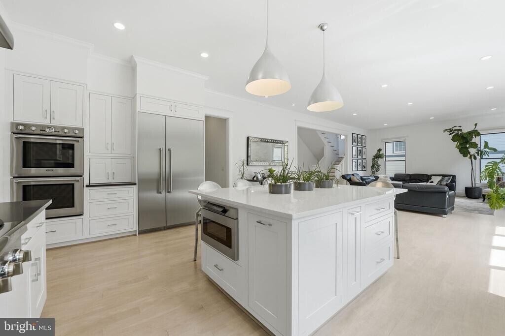 A rare opportunity in the heart of Clarendon, this thoughtfully designed residence seamlessly blends luxury, comfort, and versatility across every level. From the moment you step inside, you’re greeted by soaring ceilings, wide-plank hardwood floors, and an abundance of natural light streaming through oversized windows and expansive glass doors. The open-concept main level is designed for both effortless living and entertaining. A stunning chef’s kitchen anchors the space, featuring sleek quartz countertops, custom cabinetry, premium stainless steel Thermador appliances, and an oversized island perfect for gathering. A spacious walk-in pantry with an additional refrigerator, along with a well-appointed butler’s pantry, provides exceptional storage and prep space, making hosting both easy and elegant. The living area is both inviting and refined, centered around a striking double-sided fireplace and framed by walls of glass that open to a private outdoor retreat, creating seamless indoor-outdoor flow. A formal dining room and a family room with custom built-ins complete this level. Upstairs, generously sized bedrooms offer a serene escape, including a spacious primary suite with abundant natural light, a spa-inspired bath with dual vanities, a soaking tub, and a glass-enclosed shower, as well as two custom walk-in closets. Secondary bedrooms are equally well-proportioned, with beautifully finished bathrooms and ample storage throughout. A well-designed laundry room with custom cabinetry, sink, and beverage fridge adds both function and convenience. The lower level offers exceptional versatility with expansive recreation and fitness spaces. A bright walk-out rec room with direct access to the backyard is ideal for entertaining, while a dedicated home fitness room featuring a Tonal Smart Home Gym provides a private, state-of-the-art wellness retreat. A guest bedroom and full bathroom on this level offer the perfect space for visitors, an au pair, or extended stays. Additional highlights include a two-car garage, a thoughtfully designed mudroom with custom built-ins, geothermal heating and cooling, and solar panels for enhanced energy efficiency. Ideally located directly across from Rocky Run Park and just a few blocks to the Metro, shops, dining, movie theaters, and the farmers market, with easy access to DC and the airport, this home offers the perfect blend of luxury living and everyday convenience.