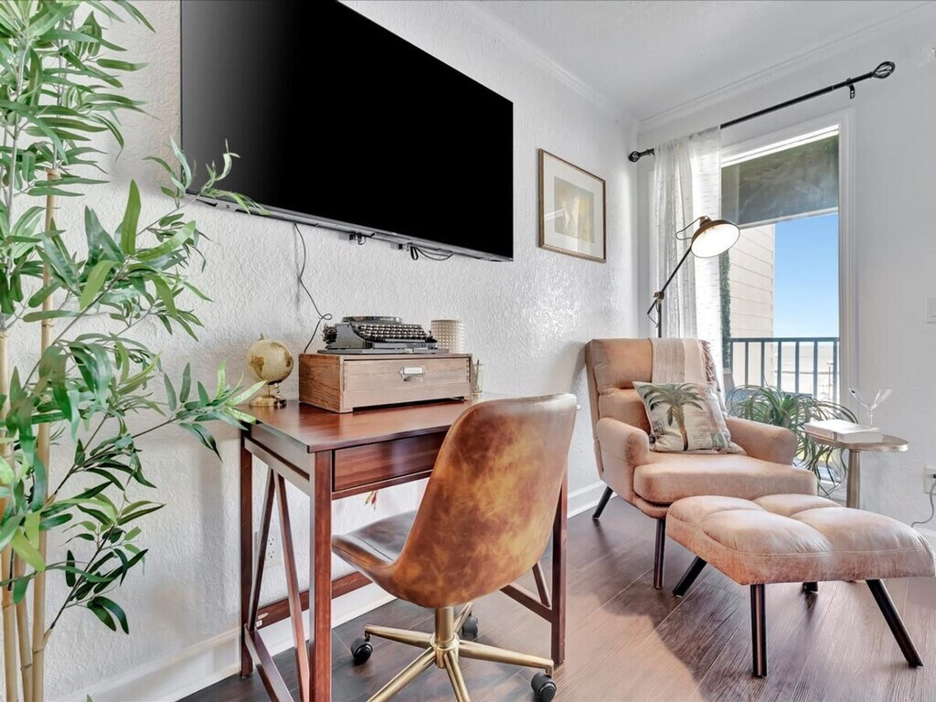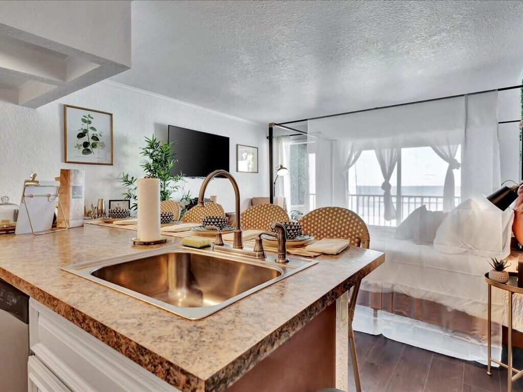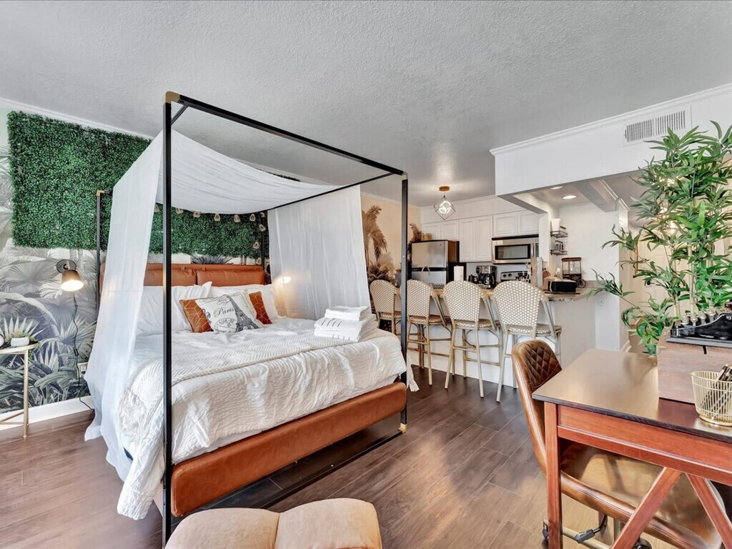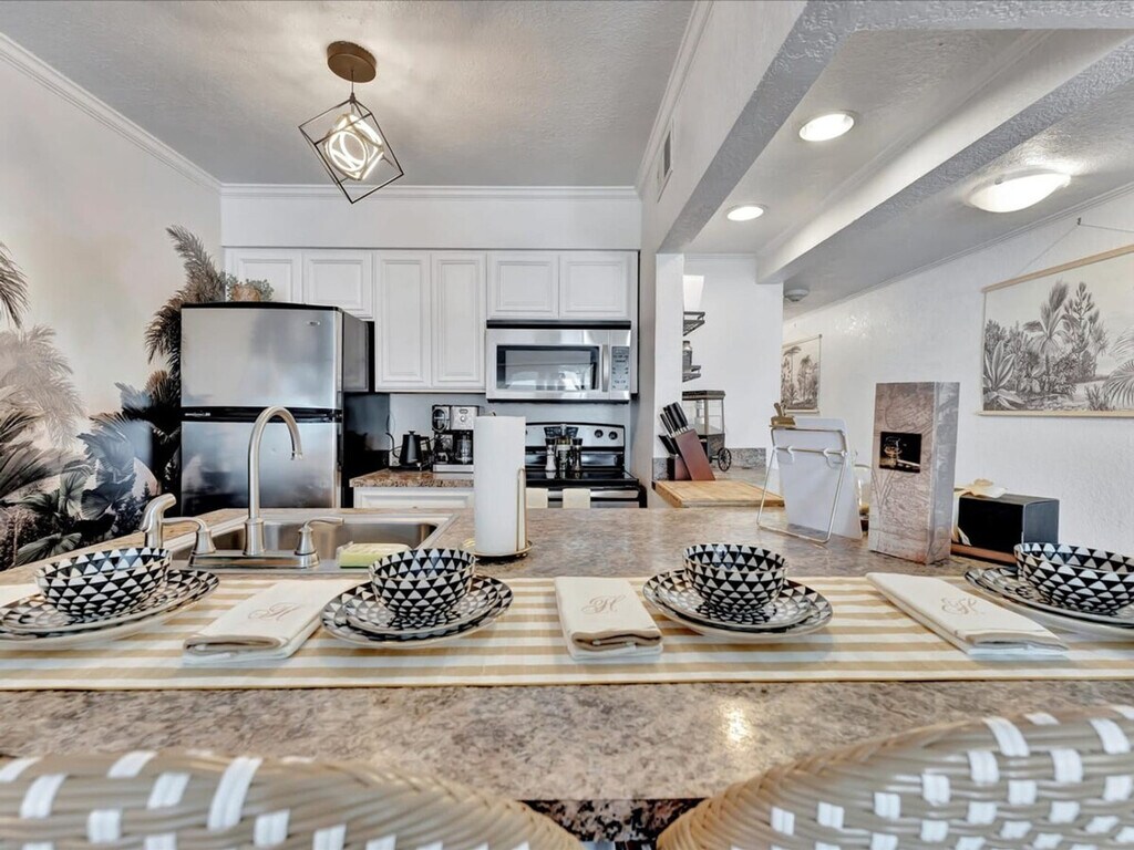 Feel at home in The Hemingway, a beautifully designed water view 1-bedroom condo on the 3rd floor (with elevator). This condo features two queen beds, a private balcony, and curated touches inspired by the legendary writer. It provides access to resort amenities like a heated pool, bar & grill, and outdoor fitness center. The full kitchen includes all cookware, utensils, and essentials, as well as a breakfast bar, popcorn maker with gourmet seasonings (when available), coffee bar with K-cups, French press, and kettle, snack basket and cold waters (when available), and cocktail bar with mixology guide and custom glasses. Other amenities include a 43” Roku Smart TV, premium linens, towels & pillows, breakfast trays, a shower with a bathtub, a tropical jungle wall mural, a reading chair with Hemingway short stories, a writer’s desk with a vintage typewriter, a telescope, a yoga mat, and light dumbbells. Enjoy fast Wi-Fi and free parking (no trailers/boats/jet skis). Need an extra bed, crib, decorations, or a stocked fridge? Just ask! Rocky Point is comprised mostly of condos and some hotels and is generally populated by tourists. Nearby restaurants include The Pelican and the resort's bar & grill. Guests can swim in the ocean at Whiskey Joes or Ben T. Davis beach, which are a short drive or walk away. Downtown Tampa, FL, and St. Petersburg are easily accessible by car or ride-sharing services. A digital rental agreement must be signed and completed prior to arrival, including providing a photocopy of a legal ID and a verification selfie. Quiet hours are from 10 pm to 8 am. If there is any smoke damage determined at our discretion, we reserve the right to charge a $250 penalty. Pets are not allowed except for service animals with prior notice, written approval, and supporting documentation provided to security upon arrival; a $100 pet fee applies. Unauthorized pets incur a $250 penalty per pet and possible reservation cancellation without refund. Guests must clean up after pets; failure to do so results in a $50 penalty. All transactions, including refunds, will incur a 3.7% processing fee applied by our payment processor; this fee is not refundable. If a guest leaves personal items behind and requests their return, they are responsible for a $35 service fee plus packaging and shipping costs. Unless requested and approved in advance in writing, we do not allow any lethal weapons on our properties; a violation of this rule will result in immediate removal from the property along with no refund and a penalty of $250. In the case of a lockout (except in the case of a lock dying due to batteries) we reserve the right to charge a $125 fee for helping gain re-entry; if the lockout is outside regular business hours (Mon – Fri, 8 AM - 8 PM) the fee will be $200. Please keep the thermostat set to “AUTO” mode and do not set the temperature lower than 71°F to prevent system issues. Weekday daytime noise (Monday to Friday, 8 AM - 6 PM) is possible due to neighbors’ projects or renovations and other activities, which are unpredictable and beyond our control. [SI]