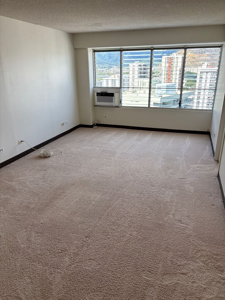 Available now at Regency Tower – a cozy studio unit located on the 22nd floor, offering cool mauka-facing views. This 400 sq. ft. unit features a window AC, new kitchen flooring, and a brand-new range hood (not shown in photos). Appliances include a refrigerator, range/oven, washer, and dryer for your convenience. One uncovered parking stall is included. Building amenities include a swimming pool, bike rack, BBQ area, meeting room, security, and ample guest parking. There’s also a convenient mini-mart located on the ground floor. Enjoy the comfort of a secured building with an onsite resident manager. No pets or smoking allowed. Renters insurance is required. Monthly rent is $1,500 and includes water and sewer. One-year lease term. To schedule a showing, please text Alohi Bumanglag (RA) at KMJ Realty LLC at .