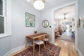 This inviting one-bedroom apartment with a versatile bonus space beautifully blends historic character with modern comfort. The bonus room offers excellent flexibility and can easily be used as a home office, guest area, or creative space to suit your needs. Inside, you’ll find preserved original details—highlighted by elegant antique chandeliers—paired with new hardwood floors throughout. The spacious bedroom easily fits a king-sized bed, offering plenty of room to relax. The newly renovated bathroom features luxurious heated floors for added comfort, while a smart thermostat allows for effortless climate control year-round. The kitchen area is filled with amazing natural sunlight, creating a bright and inviting space for everyday living. An electric fireplace insert adds warmth and ambiance, making the home especially cozy on cooler evenings. Additional features include a working intercom system and a cat-friendly policy. For convenience, parking is available in the nearby Newport deck for approximately $125 per month. The location is truly exceptional—set directly on highly sought-after Hamilton Park, one of the most desirable and picturesque areas in the city. This vibrant neighborhood offers an unbeatable lifestyle, with a beloved farmers market, top-rated dining, charming coffee shops, and tennis courts all just outside your door. With quick and convenient access to transportation for an easy commute into the city, this home combines character, comfort, and an outstanding location in one remarkable package.
