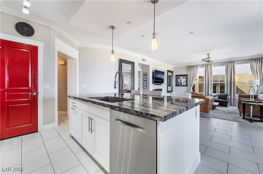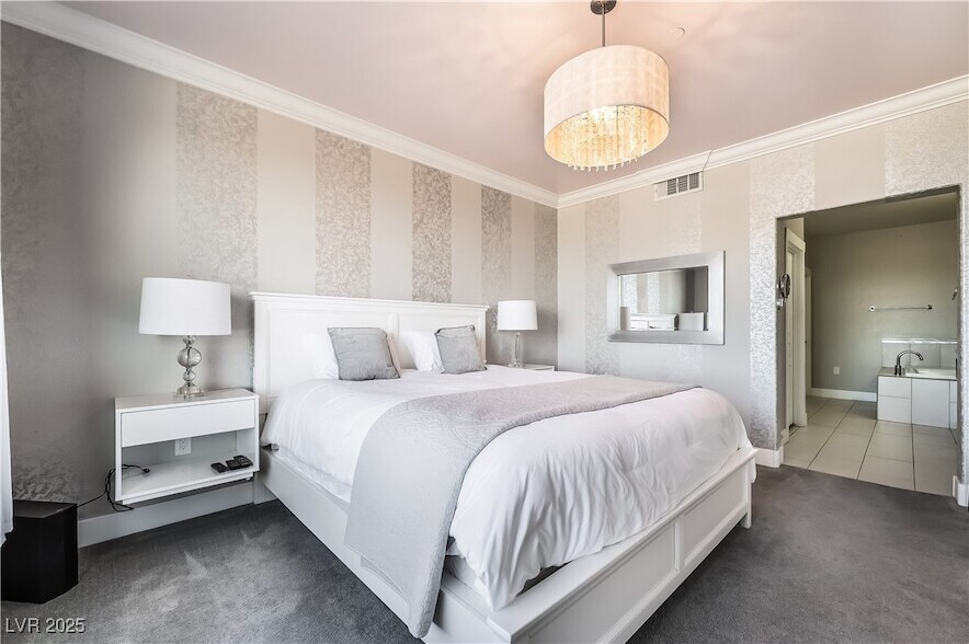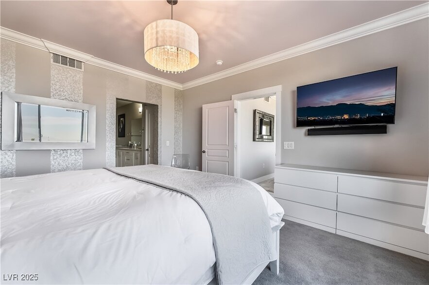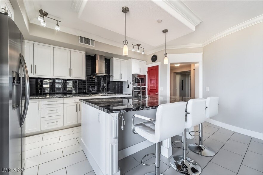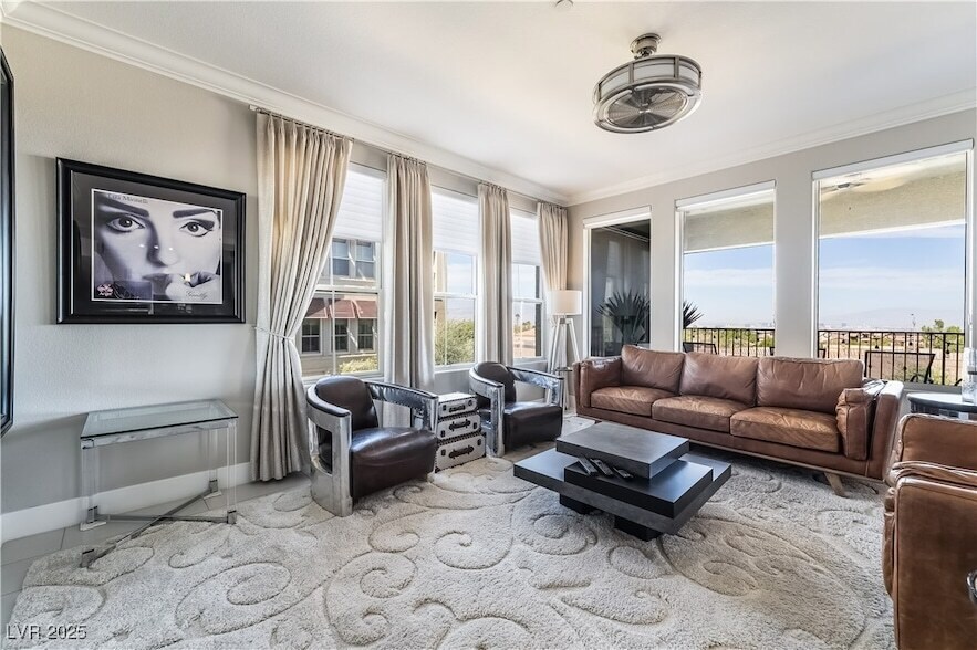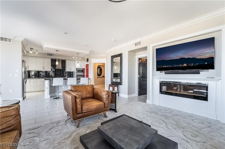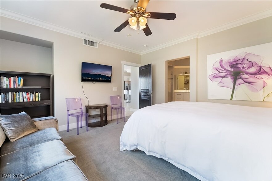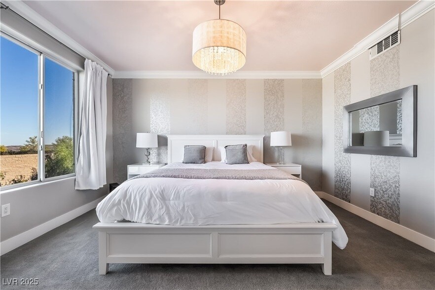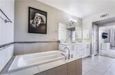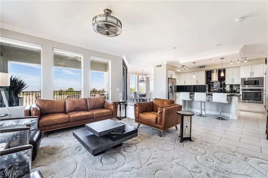 Karin ComeauxExperience resort-style living in this exquisitely decorated 2-bedroom, 2-bath 2 car garage condo featuring two primary suites, each with a private bath and walk-in closet. Enjoy breathtaking Strip and city views from your private covered veranda with ceiling fans. This turn-key, fully furnished home includes high-end furnishings, TVs in every room, a cozy fireplace, and all cookware, plates, and silverware. The Gorgeous kitchen boasts granite counters, subway tile backsplash, shaker soft-close cabinets, and stainless steel appliances. Located in a gated 55+ community with secure building access, residents enjoy resort amenities sparkling pool with waterfall & spa, updated clubhouse, fitness center, and outdoor living area with big screen TV. Includes a 2-car garage, water softener, and ample guest parking. Convenient Anthem location close to shopping, dining, and entertainment. At least one occupant must be 55+. No one under 18 may reside more than 30 days.