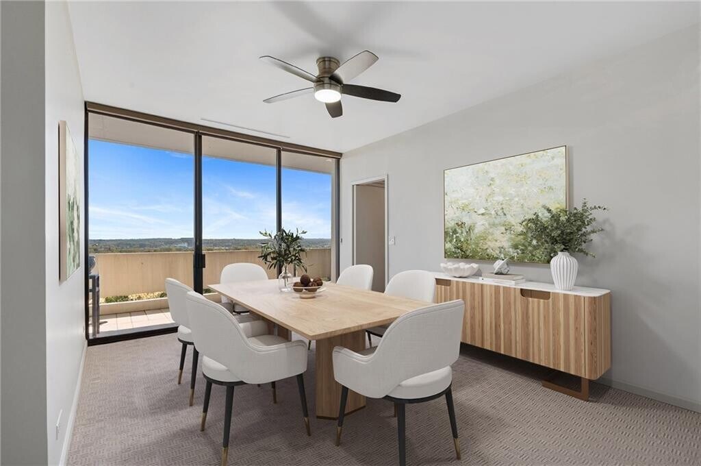 Luxury Condo on Peachtree's Golden Mile. Experience sophisticated, quiet living in this 2-bedroom, 2-bathroom residence perched on the 21st floor, offering stunning nighttime views through the floor-to-ceiling windows. Spacious living room and separate dining room, bright eat-in kitchen area, and private balcony with breathtaking evening skyline views. Terraces accessible from most rooms for seamless indoor-outdoor living. Elegant floor-to-ceiling windows fill the home with natural light. 24-hour concierge service for security and convenience. Walk to the beloved Duck Pond and nearby Buckhead amenities. This rare offering blends luxury, comfort, and convenience in one of Buckhead's most desirable locations. Updated photos coming soon.