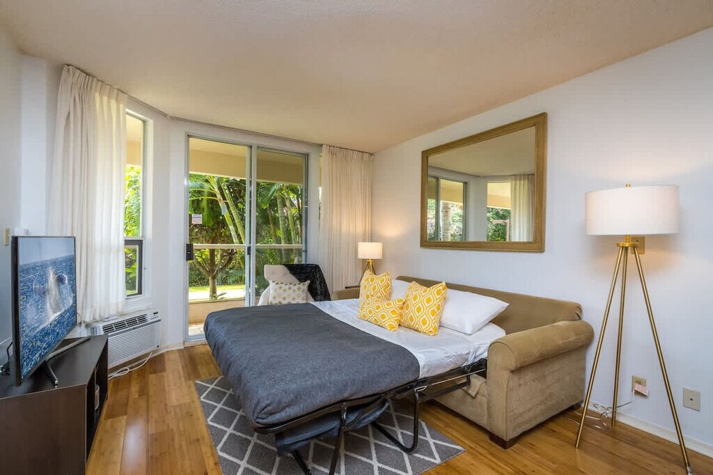 Feel at home in this stylish, open-concept retreat in a prime location, just a 5-minute stroll to Charley Young Beach. This apartment features a spacious and modern living area with an HDTV, a fully equipped kitchen with premium appliances, and a private lanai with seating and garden views. The king-size bedroom includes a plush mattress and Smart TV. A memory foam sofa bed provides comfort for extra guests. The spa-like bathroom features a granite vanity and rainfall shower. AC and ceiling fans are installed throughout for optimal comfort. Free beach gear and discounts are included. Steps from local dining, shopping, and nightlife, this apartment is a short drive to snorkeling, sailing, and top Maui attractions. No smoking is allowed inside or outside within 100 feet, even on the balcony, and there is a $500 minimum fee for violations. Pets are not allowed on the premises, and a minimum penalty fee of $500 will be applied if a pet is found. There are to be no parties. Please avoid any spills on the rug and sofa, and avoid any permanent stains on the white towels provided. Do not leave the apartment with the AC on anytime you leave the property for the beach or at check-out. If the unit is unusually loud and complaints are received from the neighbors or other guests, you will be asked to leave. The noise level is particularly important during the quiet hours, from 10 pm to 8 am. Remove shoes in the apartment. The adjoining door is securely locked and inaccessible for your safety. [SI]