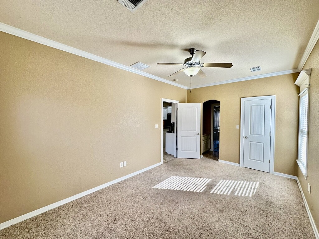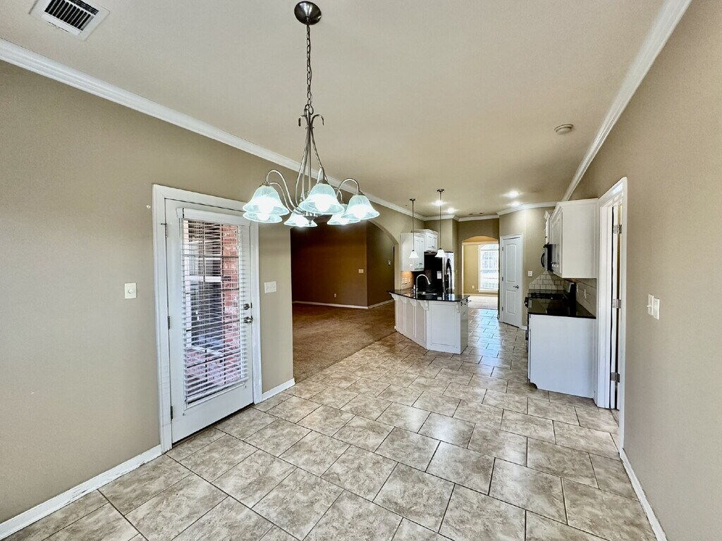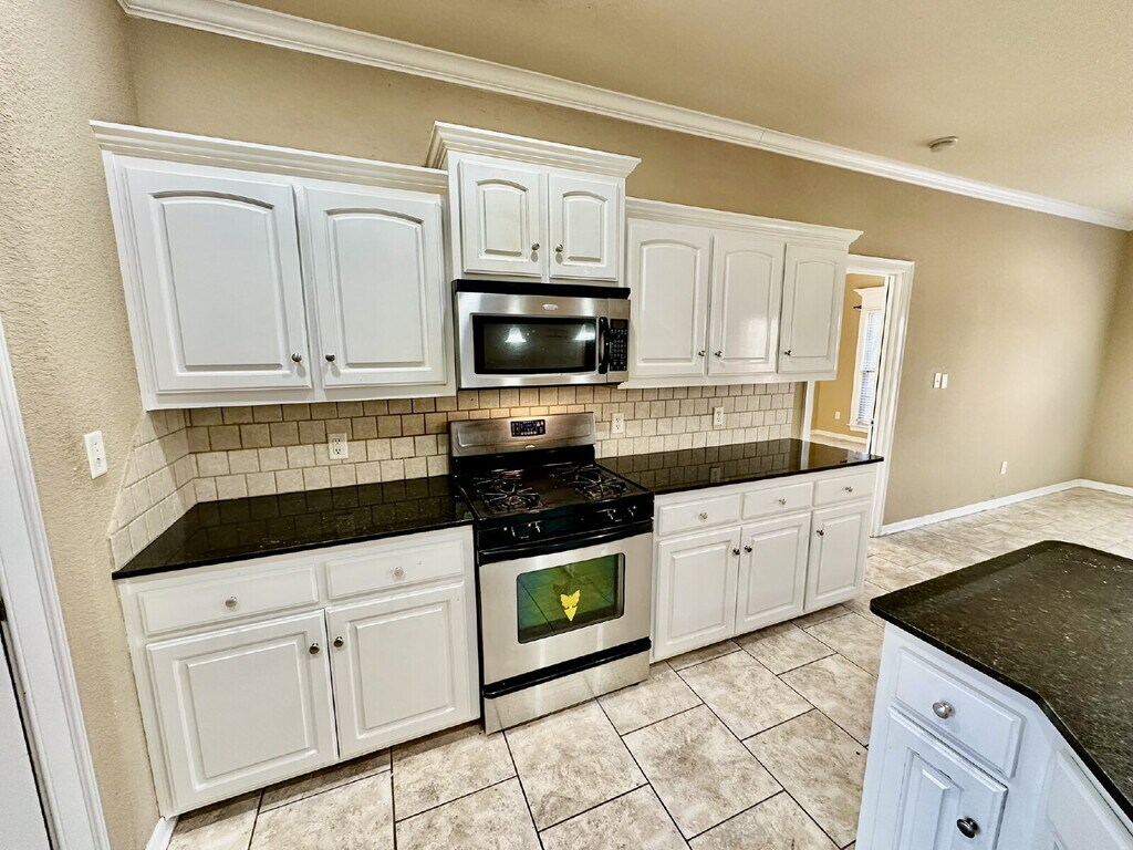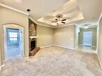 Absolutely beautiful home located at the end of a half cul-de-sac on a spacious lot. The living room features a brick fireplace and flows into the kitchen with stainless steel appliances, gas range, granite countertops, pantry, and a large eat-in area. The primary bedroom includes a tray ceiling, walk-in closet, dual vanities, Jacuzzi tub, and separate shower. Two additional bedrooms share a Jack-and-Jill bathroom, plus an office or 4th bedroom, laundry room, and guest half bath. Enjoy the landscaped backyard with covered patio, deck, fire pit, and wood privacy fence. No homes behind the property, with a stocked pond and trail system just beyond the fence.**No Pets**