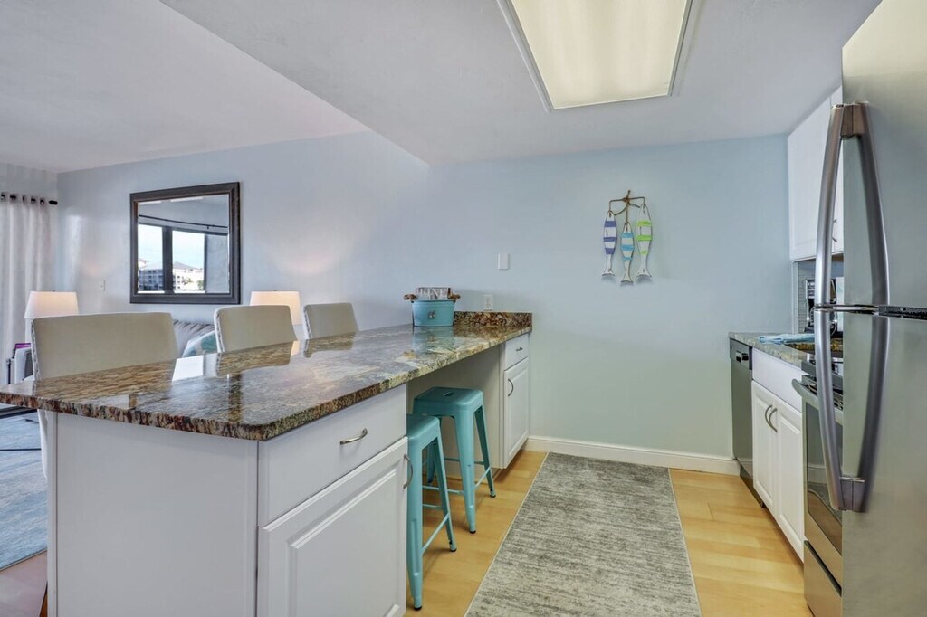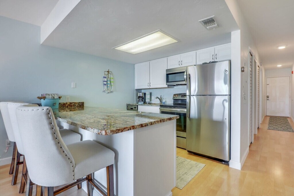 Indulge in the ultimate coastal living experience with this stunning one-bedroom condo, ideally located just off Vanderbilt Beach Road in North Naples. This unit is on the second floor and offers self check-in. Revel in the convenience of having a plethora of exceptional restaurants, including the renowned Gumbo Limbo at The Ritz, within walking distance. Moreover, you're only a two-minute stroll away from the pristine beach, ensuring that the sun, sand, and sea breeze are always at your fingertips. In addition to its superb location, this condo is just a five-minute drive from the local grocery store, high-end shopping malls, and upscale dining establishments. For travelers, it's a breeze with a quick 30-minute drive to Southwest Florida Airport. And when you're in the mood for the vibrant scene of downtown Naples, the iconic Naples Pier, and the cultural hub of 5th Avenue South, they're all just 15 minutes away. Inside the condo, you'll discover a host of inviting features, including a fully equipped kitchen with modern amenities, making meal preparation a breeze. Entertainment is at your fingertips with a cable TV and high-speed Wi-Fi, while beach chairs, linens, and towels are thoughtfully provided for your comfort. Begin your day on the private lanai, sipping your morning coffee while soaking in the tranquility. Impeccable interior design and furnishings create a cozy and inviting atmosphere, ensuring your stay is a memorable one. To top it all off, you'll have access to a heated pool at Vanderbilt Palms, where you can take a dip and savor the Florida sunshine. Your ideal vacation retreat awaits, where style, comfort, and convenience combine to offer you a truly exceptional escape. Whether it's exploring local cuisine, beachfront relaxation, or poolside serenity, this condo has it all. Your perfect getaway starts here! Parking is free. Nestled in a dynamic neighborhood off Vanderbilt Beach Road in North Naples, this one-bedroom condo boasts a prime location. It offers easy access to a variety of restaurants, including the renowned Gumbo Limbo at The Ritz, all within walking distance. The beach is conveniently just a brief two-minute stroll away, and you'll find grocery stores, upscale shopping, and fine dining options all within a quick five-minute drive. Furthermore, the condo is just a 30-minute ride from Southwest Florida Airport and a mere 15 minutes from downtown Naples, the iconic Naples Pier, and the vibrant 5th Avenue South, ensuring a wealth of cultural and entertainment experiences are at your doorstep. Construction project ongoing in surrounding area. The Hot Tub will be removed by the HOA this summer and they will not be replacing it. This unit is provided with a starter set of body wash, bar soap, shampoo and conditioner, 1 roll of toilet paper and paper towels, and 1 dishwashing pod. Once these items run out, they are not replenished. [SI]