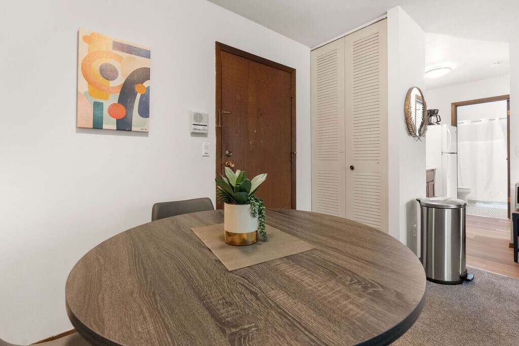 Feel at home in this quiet and clean 1st-floor 1-bedroom apartment. This 518 sq ft apartment features a galley kitchen, a living room/dining room space with trendy new furnishings, and a washer and dryer in the building. Free parking is available in the apartment parking lot (1 stall included). Experience urban living within walking distance to UW Hospital, VA Hospital, School of Engineering, Pharmacy and Nursing schools, Camp Randall Stadium, and many local bars, restaurants, coffee shops, and amenities. The "Old University Ave" neighborhood is a fantastic location for work, school, and Badger events alike. It's a fun neighborhood with a mix of young and established professionals and is within walking distance to many local restaurants, bars, and essentials. You can walk to all amenities needed. There are 8 bus stops nearby which will route you anywhere in the city. Madison is known to be one of the best cities for biking in the county. Smoking is prohibited, and any smoking will result in immediate cancellation of the reservation with no refund for the entire stay. The charge to remediate smoking is the actual costs of complete environmental remediation or $3,000, whichever is lower. Please avoid excessive noise. Excessive noise violations after the first complaint will result in cancellation of the reservation with no refund. If pets are on the premises without advance written permission from the trusted partner, the charge will be the actual costs of complete environmental remediation or $3,000, whichever is lower. Includes a large bedroom with a huge walk-in closet and a standing desk. [SI]