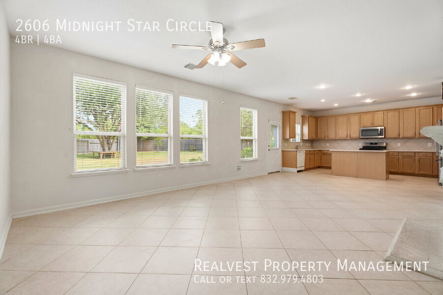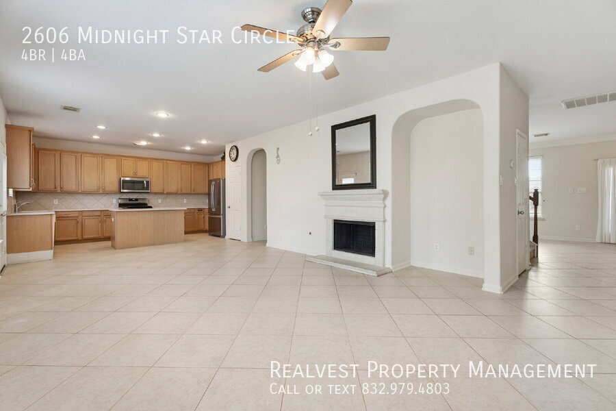 Admire the elegance and charm of 2606 Midnight Star Circle, a stunning 2930 sq ft retreat nestled in the heart of Friendswood, TX. This spacious four-bedroom residence offers an exquisite blend of comfort and style, perfect for those who appreciate the finer things in life. Step inside to discover an open-concept layout perfect for everyday living. Gather around the cozy fireplace, creating an inviting ambiance for memorable evenings with family and friends. With two full baths and a convenient half bath, this home ensures ample space and privacy for all residents and guests. Enjoy the tranquility of a peaceful neighborhood while being just moments away from local amenities and attractions. Experience the perfect harmony of functionality and appeal in this exceptional rental property. Make 2606 Midnight Star Circle your sanctuary.Gas Cooktop