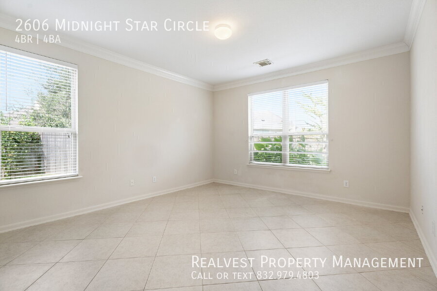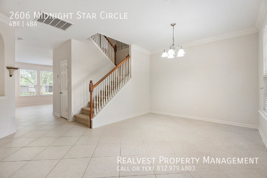 Admire the elegance and charm of 2606 Midnight Star Circle, a stunning 2930 sq ft retreat nestled in the heart of Friendswood, TX. This spacious four-bedroom residence offers an exquisite blend of comfort and style, perfect for those who appreciate the finer things in life. Step inside to discover an open-concept layout perfect for everyday living. Gather around the cozy fireplace, creating an inviting ambiance for memorable evenings with family and friends. With two full baths and a convenient half bath, this home ensures ample space and privacy for all residents and guests. Enjoy the tranquility of a peaceful neighborhood while being just moments away from local amenities and attractions. Experience the perfect harmony of functionality and appeal in this exceptional rental property. Make 2606 Midnight Star Circle your sanctuary.