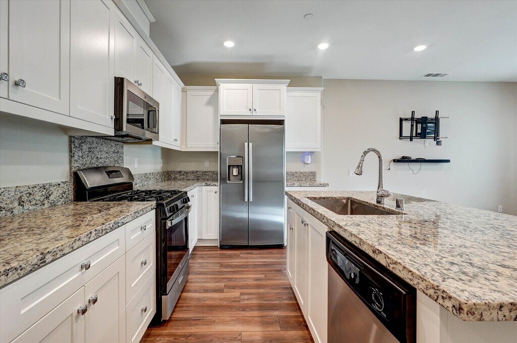 This stunning 2020 built unit with its great features is nestled in the highly desirable Concord at River Village community. Here are a few of its many other features: Large front patio welcomes you A 1,500 square foot open concept “Move-In-Condition” floor plan that is bathed in natural light with high ceilings, recessed lighting, and elegant wood and premium carpet flooring ? Spacious living room ? The family’s cook is going to love the beautiful kitchen’s abundant cabinets, pantry, granite counter-tops with back-splash, all newer GE® built-in appliances, double door refrigerator, gas range with ventilation hood, breakfast bar, and adjoining dining area ? 3 bedrooms; The grand suite has a walk-in closet and well-appointed bathroom ? 2½ bathrooms; The ½ bathroom is located on the first level for your guests ? Second level includes a convenient laundry room with washer & dryer included, and a versatile landing area perfect for a home office, reading nook, or play space ? Central heat & air for year-round comfort ? You’ll appreciate the comfort of smart-home technology that chimes with all entry-level doors opening and Ring video doorbell with electronic front door deadbolt with PIN access ? The attached 2 car garage offers ample parking and additional storage space, EV charging station, auto garage door, and tank-less water heater ? Enjoy the resort-style amenities including a sparkling pool, relaxing spa, clubhouse, barbecue area and a children’s play zone ? Walking access to hiking and biking trails, including the scenic Central Park Trail just steps away ? Conveniently close to shopping, Bouquet Canyon Plaza, shopping, restaurants and transportation ? There is additional street parking available- first come first serve ? Call now for all the details and I’ll gladly arrange your private tour ? For Lease At: $4,000.
