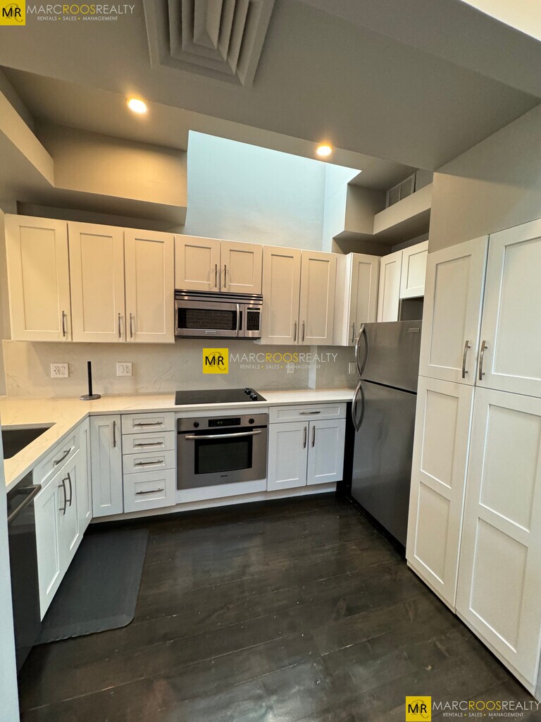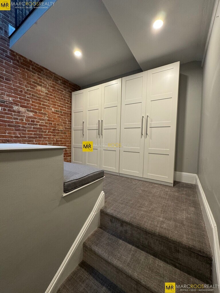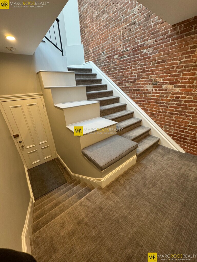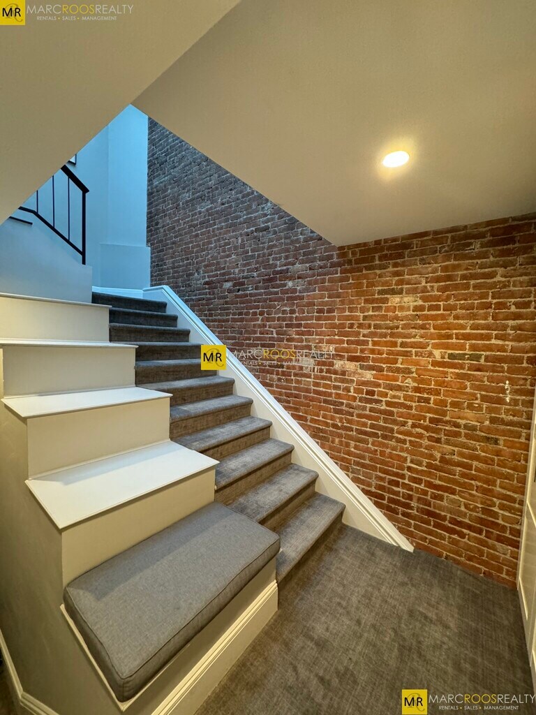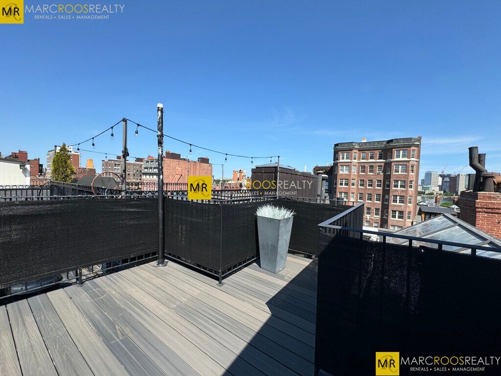 FURNISHED 2 Bedroom Penthouse in Back Bay with Private Roof Deck -------------------------------------------- Front Facing! Totally Renovated 2BD floor-through Penthouse w/ 300 sqft private roof deck featuring sweeping City & Charles River views. Steps from Copley square and the Esplanade, this sophisticated 2020 renovation combines original Back Bay character including Carrara marble and exposed brick with modern luxury and elegance. All new kitchen, bathroom, recessed and chandelier lighting, central air, built-in closets & restored flooring.Wonderful open layout can accommodate spacious living + dining and features a Marble wood-burning fireplace, oversized windows,10 ft ceilings and soaring skylights. The large kitchen features quartz counter, backsplash & breakfast bar, custom cabinets, abundant storage & Bosch appliances. The chic bathroom w/marble accents compliments the entire design. Two bright bedrooms feature built-in closets and charming views.In-unit spiral stairs provide access to the private roof deck and cherished outdoor space. 4th Floor Walk Up.