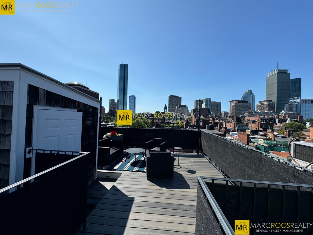 Experience your best life in Back Bay with this floor thru FULLY FURNISHED front facing penthouse that features: - Welcoming entry foyer w/ closet space! - Hardwood flooring shining throughout! - High end, fully equipped kitchen! - Stainless appliances inc dishwasher! - Quartz countertops & breakfast bar! - Open concept floorplan w/ 10 foot ceilings! - Skylights drenching living room in sunlight! - Charming decorative marble fireplace! - 2 generously sized equal bedrooms! - Large closets & ample storage space! - Luxuriously updated marble full bathroom! - Convenient in unit washer & dryer! - Central heating & air conditioning! - Classic wrought iron spiral staircase! - Expansive private roof deck w/ amazing views! Renovated in 2020 with no expense spared & No detail overlooked mixing traditional Back Bay Brownstone elements w/ the best of the best of today & FULLY FURNISHED w/ brand new pieces from Restoration Hardware - this unit is truly a one of a kind opportunity to live large in the tony Back Bay! Prime location surrounded by luxury new builds & classic Brownstones in the heart of Back Bay on sought after, historic, tree lined Beacon Street! Close to Newbury Street, Commonwealth Ave Mall, Kenmore Square, Boston Common, Suffolk University, Prudential Center, Copley Square, Restaurant Row, Boston Public Library, Public Gardens, Emerson College, Symphony Hall, Hynes Convention Center, and much more! Anything not in short distance can be easily accessed by the close by public transportation: Green and Orange train lines nearby, as well as Silver Line shuttle, many major MBTA bus routes, and Commuter Rail at Back Bay Station!
