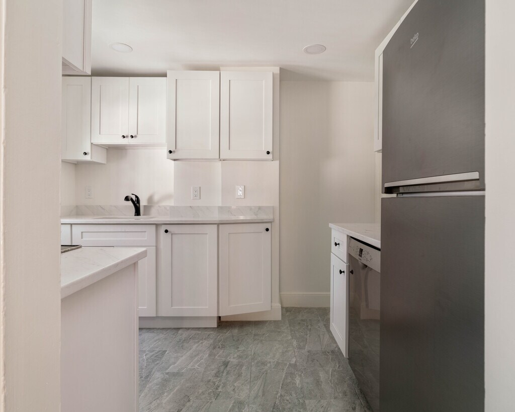 Julie BellNo Fee! This spacious brick duplex unit is conveniently located on a charming cul de sac street and near Newton Highlands and Newton Centre. With many recent updates and having been freshly painted you will enjoy a new kitchen with white cabinets and quartz countertops and the bathroom has also had recent updates. The first floor of this home has an open living and dining area and an updated kitchen. From the kitchen you will have access to the rear deck and the common backyard. The second floor has two nicely proportioned bedrooms and one bathroom. There are hardwood floors throughout the home and there is an unfinished basement with laundry/mechanical room having a washer and dryer and a second room suitable for storage. There are two parking spaces, in tandem to one another, in the driveway. No pets will be considered.