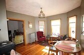 Large Philadelphia style apartment. First floor has living room, dining area, eat in kitchen one bedroom and a large study. Three additional bedrooms on second level. Private laundry in basement. Private deck. Bonus workspace in finished and heated converted garage. One parking spot.