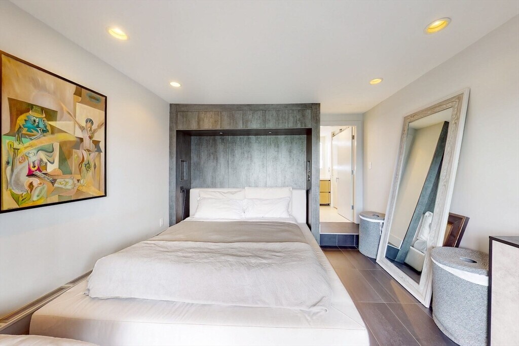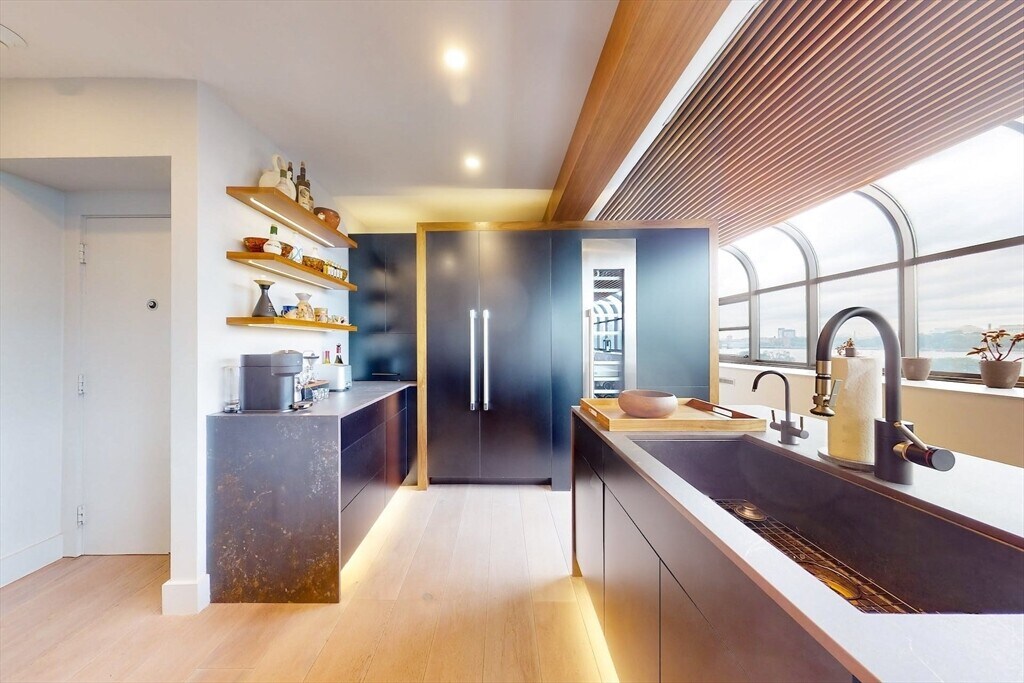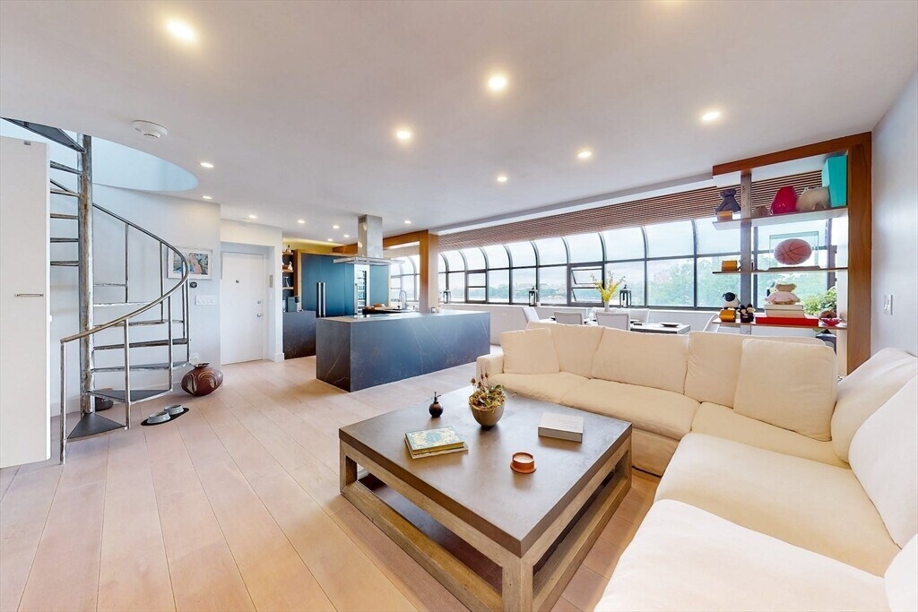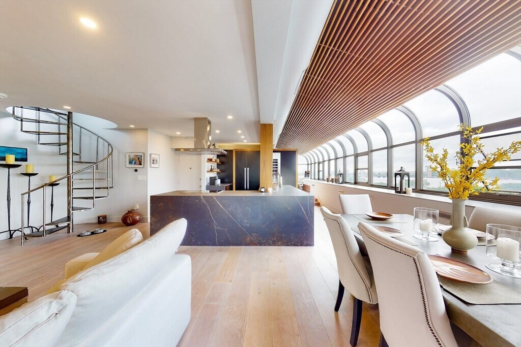 Perfect location on Beacon Street with on-site Garage Parking, this loft style home offers a large private roof deck while the living area features a wall of windows with expansive views of the Charles River & Cambridge. Bright and Sunny, the open layout is perfect for entertaining with a spiral staircase offering direct access to the stunning roof deck views of The Charles River. Offered vacant or furnished. Recently renovated with gourmet kitchen, hardwood floors, master bedroom with ensuite and den plus, separate office area. In unit washer dryer. Note - Sleeping alcove used as a second bedroom. Heated Garage Parking included. This condominium home has a gated entry courtyard and is in a professionally managed building, w live-in super. Small pet possible.