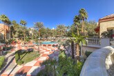 Unfurnished Valencia model, the largest condo plan in Meridian - just short of 1300 sqft and has an additional room, or den! Includes luxurious features such as travertine flooring, a balcony, SS appliances, crown molding, wet bar, and a washer and dryer. This is a deluxe unit! Community provides resort like amenities and located near the strip.