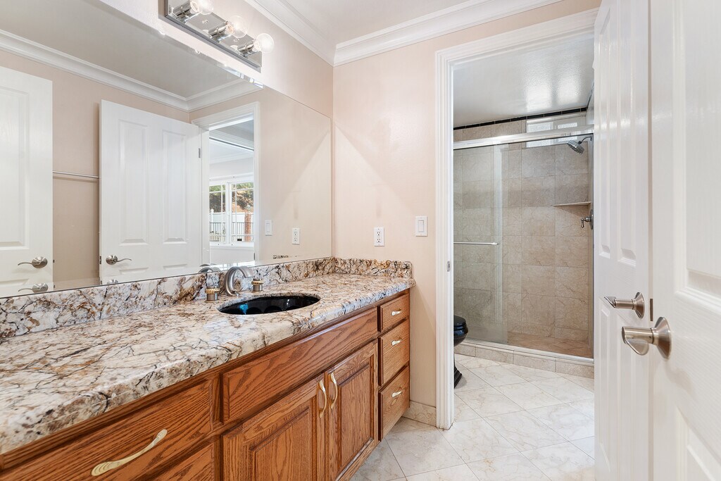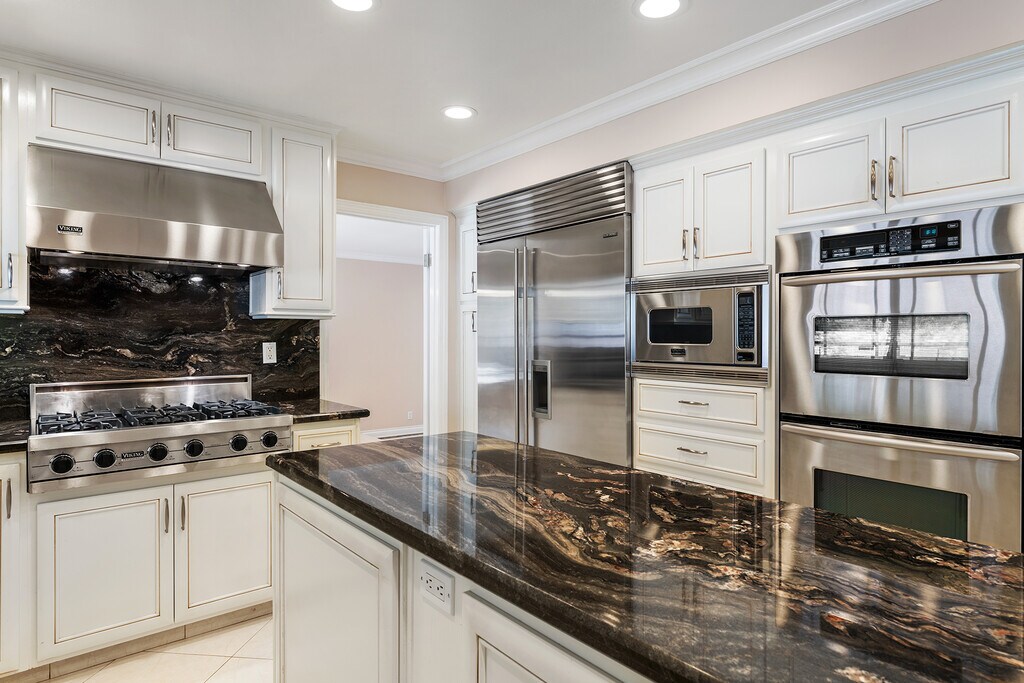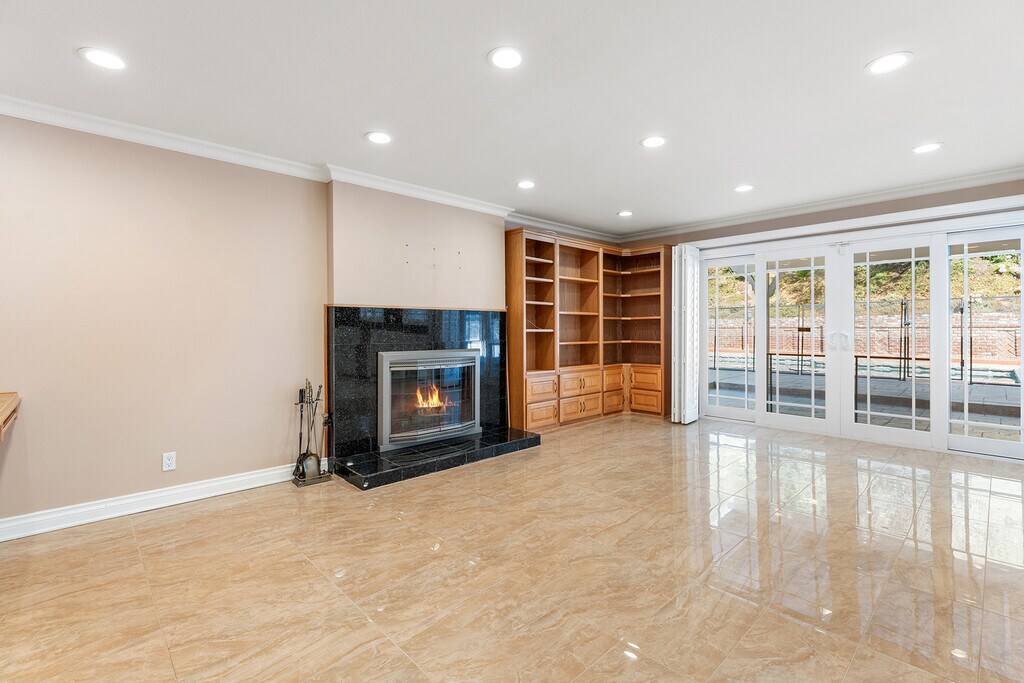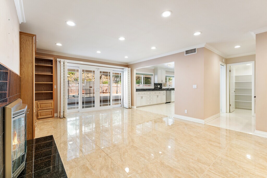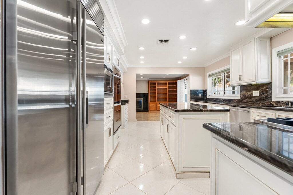 Situated in the idyllic Saratoga Hills neighborhood of Calabasas, this 2,959-square-foot, 5-bedroom, 3-bathroom home sits on a generous 13,237-square-foot lot, offering a perfect blend of comfort and luxury. The expansive main floor features a large living room, dining room, and a great room with a custom fireplace. It also includes a main-floor en-suite bedroom with a full bath, ideal for guests, in-laws, a home gym, or an office. The chef’s kitchen boasts a walk-in pantry, under-cabinet lighting, and top-of-the-line appliances, including a Sub-Zero refrigerator, Viking gas cooktop, dual ovens, and a microwave. A spacious center island provides ample counter space for meal preparation and casual dining. The great room is enhanced with two built-in desks, custom bookshelves, and cabinets, making it perfect for working from home. Sliding doors lead to a private backyard with a sparkling pool, new pool heater, spa, and a covered patio, ideal for outdoor dining and entertaining. The fully enclosed yard also features a spacious dog run, with gardener and pool services included. Upstairs, the main bedroom overlooks the backyard and features a romantic fireplace, a large walk-in closet, and a luxurious bathroom with dual sinks, a frameless glass shower, and a bidet. The three additional bedrooms, each with mirrored closet doors, share a hall bath with dual sinks, a frameless glass shower enclosure, and a separate tub. Additional features of the home include a three-car garage with built-in cabinetry for ample storage, an electric car charger, white plantation shutters, recessed lighting, dual HVAC systems, a new washer/dryer set, and a sizable shed. Located in the award-winning Las Virgenes School District,