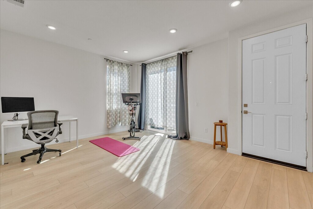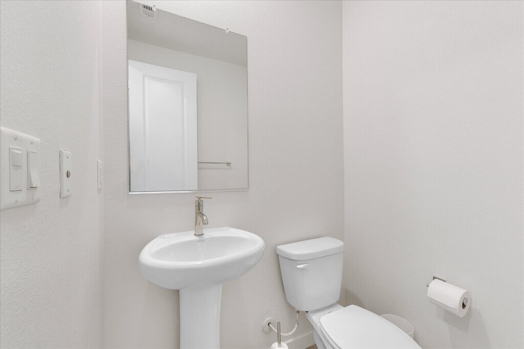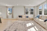 Discover an exceptional living opportunity within the highly sought-after Five Point community in Valencia. Built in 2022, this tri-level elevation home epitomizes all the luxuries and sophistication of everyday living. A desirable corner unit with only one shared wall and inviting courtyard entry opens to this light and bright 3-bedroom, 4-bathroom townhome with approximately 2,054 square feet of living space. Main level features an open floor plan great room with living room, dining area, kitchen and powder room. Sun-filled kitchen with views abound is equipped with a large center island, stainless steel appliances, walk-in pantry, Quartz countertops, and white cabinets. Center island overlooks spacious living room area with wider planked wood-like floors plus tons of natural light, providing a tranquil and peaceful living space. The upper level hosts your primary suite plus two bedrooms and a dedicated laundry closet with a side-by-side washer and dryer. Elegant primary suite with plush carpeting, spacious walk-in closet, and primary bathroom with dual vanity sink and oversized walk-in custom tiled shower. Upper third level also features two generously proportioned Jack & Jill bedrooms with an adjoining bathroom. Lower-level features quaint entry with an open concept den, that could be used as a family room, office, gym or guest area, with sliding door overlooking the front courtyard. Lower level also features a powder room and is attached to 2-car garage with convenient direct access. Ideal for modern living with eco-friendly amenities like solar panels to help significantly reduce electric bills, Ecobee thermostat, EV charger, water filtration system and tankless water heater, allow for convenience and sustainability. Situated in a prime location, just a few minutes to Confluence Park, residents of FivePoint enjoy access to several resort-style amenities, including multiple pools and spas, a clubhouse, parks, sport courts, hiking/biking trails, community greenhouse, and the Community Center. Brilliantly located near major roads, easy access to freeways, amusement parks (Magic Mountain is just minutes away!), shops, restaurants, award winning schools and more.