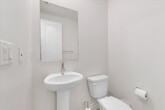 Discover an exceptional living opportunity within the highly sought-after Five Point community in Valencia. Built in 2022, this tri-level elevation home epitomizes all the luxuries and sophistication of everyday living. A desirable corner unit with only one shared wall and inviting courtyard entry opens to this light and bright 3-bedroom, 4-bathroom townhome with approximately 2,054 square feet of living space. Main level features an open floor plan great room with living room, dining area, kitchen and powder room. Sun-filled kitchen with views abound is equipped with a large center island, stainless steel appliances, walk-in pantry, Quartz countertops, and white cabinets. Center island overlooks spacious living room area with wider planked wood-like floors plus tons of natural light, providing a tranquil and peaceful living space. The upper level hosts your primary suite plus two bedrooms and a dedicated laundry closet with a side-by-side washer and dryer. Elegant primary suite with plush carpeting, spacious walk-in closet, and primary bathroom with dual vanity sink and oversized walk-in custom tiled shower. Upper third level also features two generously proportioned Jack & Jill bedrooms with an adjoining bathroom. Lower-level features quaint entry with an open concept den, that could be used as a family room, office, gym or guest area, with sliding glass door overlooking the front courtyard. Lower level also features a powder room and is attached to 2-car garage with convenient direct access. Ideal for modern living with eco-friendly amenities like solar panels to help significantly reduce electric bills, Ecobee thermostat, EV charger, water filtration system and tankless water heater, allow for convenience and sustainability. Situated in a prime location, just a few minutes to Confluence Park, residents of FivePoint enjoy access to several resort-style amenities, including multiple pools and spas, a clubhouse, parks, sport courts, hiking/biking trails, community greenhouse, and the Community Center. Brilliantly located near major roads, easy access to freeways, amusement parks (Magic Mountain is just minutes away!), shops, restaurants, award winning schools and more.