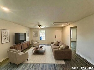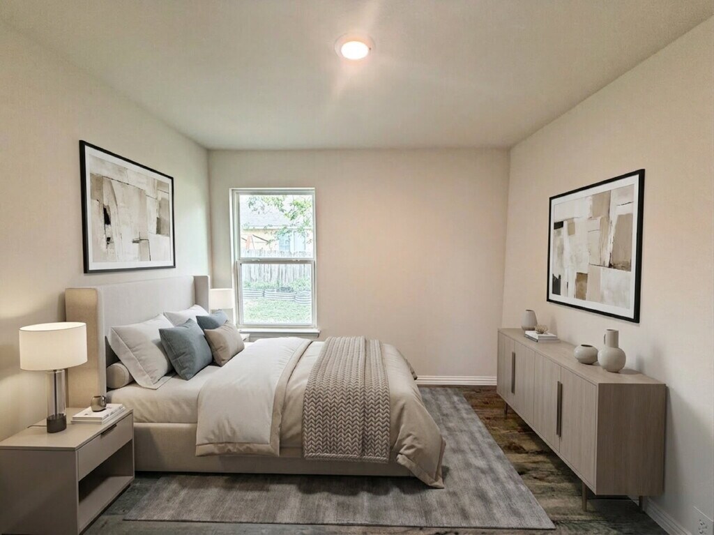 Gorgeous! Single Story, 3-bedroom, 2-bath home. Open-concept design. Features granite countertops, stainless steel appliances including fridge. Washer & Dryer included. Partially fenced large lot. Primary bedroom w/full bath. Location close to shopping, and restaurants.