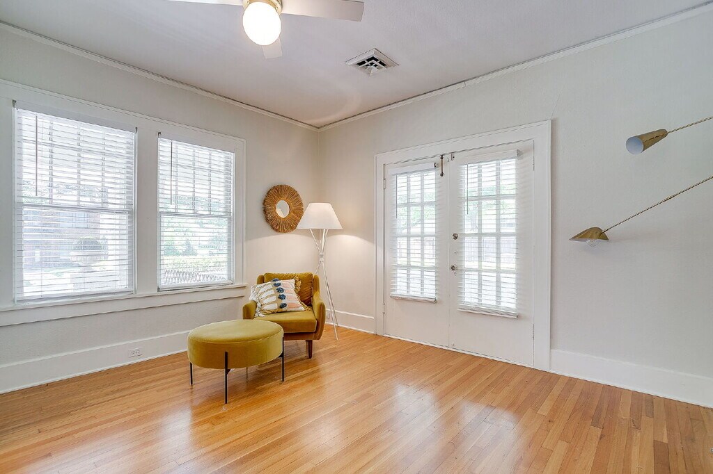 Discover this charming single family residence located in the heart of the University Place subdivision. This historic 1926 craftsman home features 3 bedrooms and 2 full bathrooms across an open layout. One of the primary highlights of this property is its exceptional location, situated within walking distance of the Texas Christian University campus, making it an ideal choice for those who value proximity to university amenities and local attractions.The interior offers a classic floor plan with original character and ample natural light. The kitchen comes fully equipped with a refrigerator included, along with a built in dishwasher and double ovens. Additional living spaces include a sun porch and a dedicated breakfast area that provides extra versatility for day to day living.The exterior of the home is equally impressive, featuring a spacious corner lot with mature trees. A wrap around front porch and an open back patio offer multiple options for outdoor relaxation. For added convenience, the property includes a separate storage room in the backyard that features electricity, perfect for a workshop or additional organization. Parking is provided via a rear entry carport.
