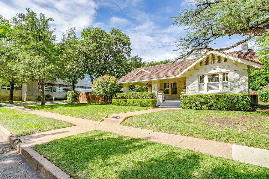 Discover this charming single-family residence located in the heart of the University Place subdivision. This historic 1926 craftsman home features 3 bedrooms and 2 full bathrooms across a well-appointed layout. One of the primary highlights of this property is its exceptional location, situated within walking distance of the Texas Christian University campus, making it an ideal choice for those who value proximity to university amenities and local attractions.The interior offers a classic floor plan with original character and ample natural light. The kitchen comes fully equipped with a refrigerator included, along with a built-in dishwasher and oven. Additional living spaces include a sun porch and a dedicated breakfast area that provides extra versatility for day-to-day living.The exterior of the home is equally impressive, featuring a spacious corner lot with mature trees. A wrap-around front porch and an open back patio offer multiple options for outdoor relaxation. For added convenience, the property includes a separate storage room in the backyard that features electricity, perfect for a workshop or additional organization. Parking is provided via a rear-entry carport.