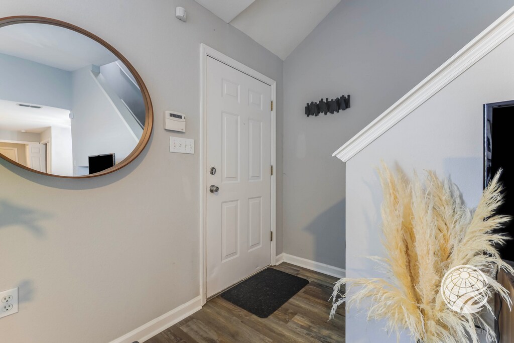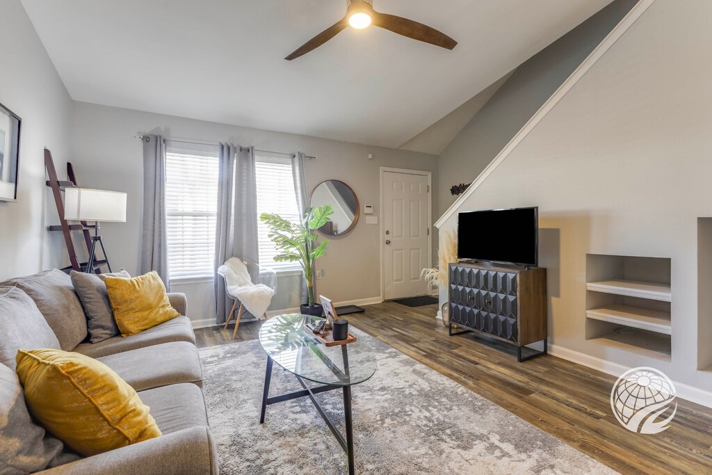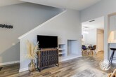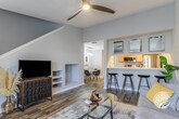 Spacious floor plan and great location to dining and shopping. 3 bedroom, 3 bathroom. Front door opens to huge living room with vaulted ceilings. Living room is overlooked by kitchen and dining area. One bedroom/bathroom located downstairs and the other 2 upstairs. Washer and dryer included.