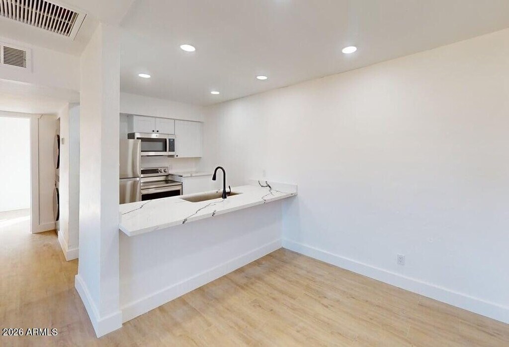 This charming 720 sq ft,2-bedroom,1-bath home in Phoenix offers a comfortable and functional layout with inviting living spaces ideal for everyday living and entertaining. The kitchen comes fully equipped with included appliances,including a refrigerator,oven,microwave,dishwasher,washer,dryer,and AC unit. Neutral flooring flows throughout the home,complementing the bright and welcoming interior. Both bedrooms are nicely sized,providing comfortable retreats,and the home is conveniently located near schools,parks,dining,shopping,and entertainment for easy access to everyday amenities.