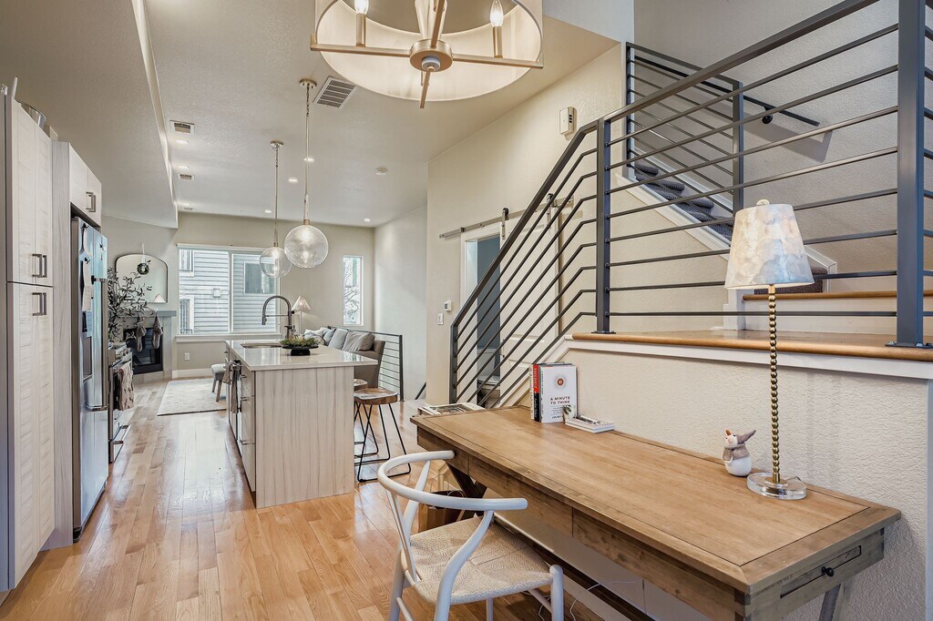 Live in the heart of Jefferson Park, one of Denver’s most desirable and walkable neighborhoods, just minutes from downtown and the city’s premier sports and entertainment venues. This fully furnished modern townhome offers a flexible 6-month lease with option to extend, ideal for professionals, relocations, or anyone seeking turnkey urban living. Layout & Living This multi-level townhome is thoughtfully designed to balance privacy, functionality, and entertaining space: Entry Level: Private entry with direct access to the attached one-car garage, offering secure parking and additional storage. Second Level – Main Living Space: An open-concept kitchen, dining, and living area designed for both everyday living and entertaining. The kitchen features stainless steel appliances, quartz countertops, and modern cabinetry, flowing seamlessly into the living space filled with natural light and contemporary finishes. Third Level – Bedroom Suites: Two spacious bedrooms, each with its own en-suite bathroom, providing ideal separation and privacy for or guests. Both bedrooms are fully furnished and thoughtfully positioned away from the main living areas. Rooftop Level: A private rooftop deck — a standout feature of the home — perfect for entertaining, relaxing, or enjoying Denver sunsets and neighborhood views. Furnishings Offered fully furnished with curated pieces throughout, allowing for a true move-in-ready experience with no setup required. Walking distance to Empower Field at Mile High, Ball Arena, and Coors Field Quick access to Downtown Denver, LoHi, Highlands Square, and Riverfront Park This is a rare opportunity to lease a furnished, modern townhome in one of Denver’s most sought-after neighborhoods, offering flexibility, walkability, and elevated urban living.
