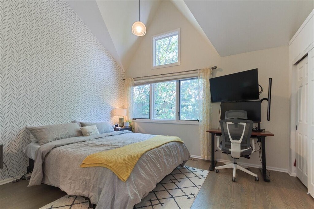 Rarely available, high-end corner townhome in the coveted Parklane development on a private cul-de-sac. This extra-wide Lincoln Park residence features premium finishes throughout. The sun-drenched main level offers an open-concept living/dining space with a wood-burning fireplace. The chef’s kitchen boasts custom European LEICHT cabinetry, a Sub-Zero fridge, and a Thermador oven/range. The oversized primary suite features soaring vaulted ceilings, generous closets, and a spa-like ensuite bath. A second bedroom and updated full bath are down the hall. The top-floor bedroom/office is flooded with natural light and opens to a private rooftop deck. The first-floor family room—perfect as a guest room, office, or gym—flows onto a spacious private patio. A full bath is also on this level. Additional highlights include refinished hardwood floors, an attached garage, and an extra outdoor parking space. Steps from top-rated Prescott Elementary. Cats and dogs okay, dogs up to 20lbs, with non-refundable pet fee.