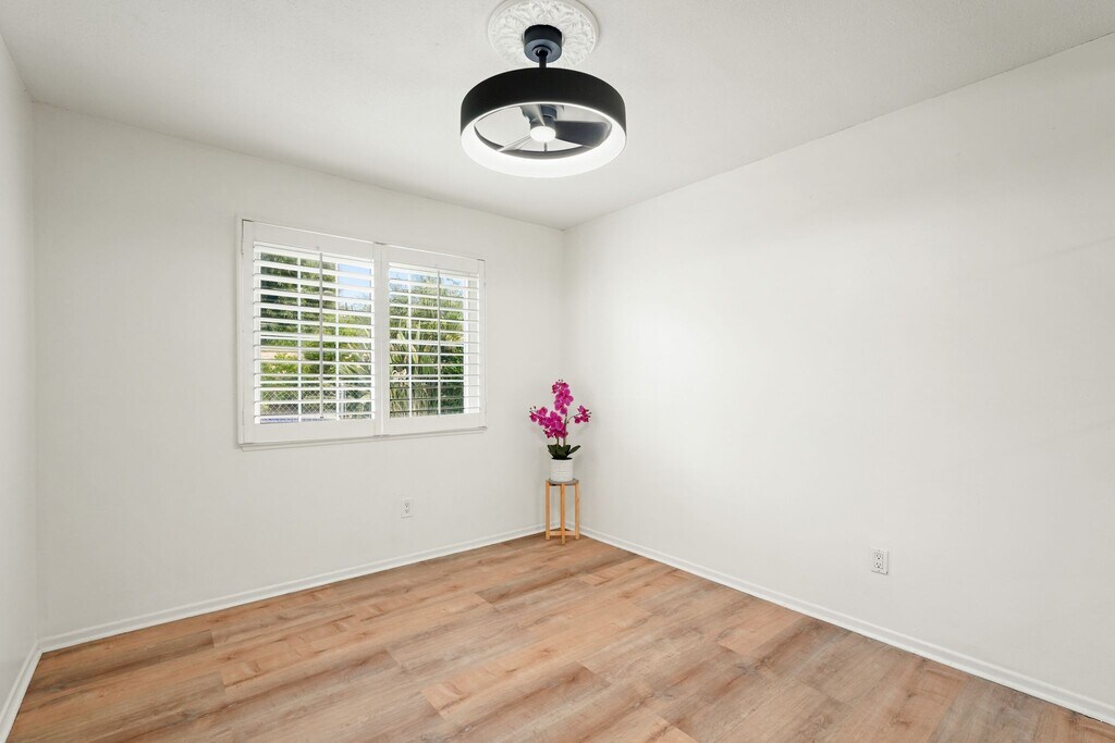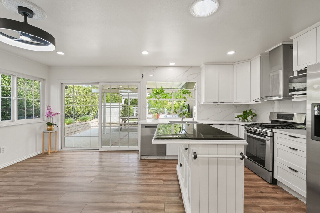 REMODELED!! 3 bedroom + DEN + 2 bathroom with PRIVATE resurfaced pebble pool and spa! Whole house water filtration, tankless water heater, EV charger, skylight, barn doors, new roof, re-piped, new appliances are on the way including LG Wash Tower, Cafe 6 burners gas range & Oven, GE French-door Refrigerator, large front and back covered patios, plus a pool cabana, new AC, closet w/built-ins, plantation shutters, ceiling fans & movable kitchen island, wood laminate flooring * Walk thru sliding glass doors to the covered patio & grassy knoll to sit & relax & enjoy the pool & spa * The fenced, private yard w/lush vegetation and cabana is great for enjoying the evenings under the stars. * If you stay inside there's the new central air to keep you cool * Shopping, golf, parks and Metro Link station are close by. Owner pays for pool and garden maintenance.